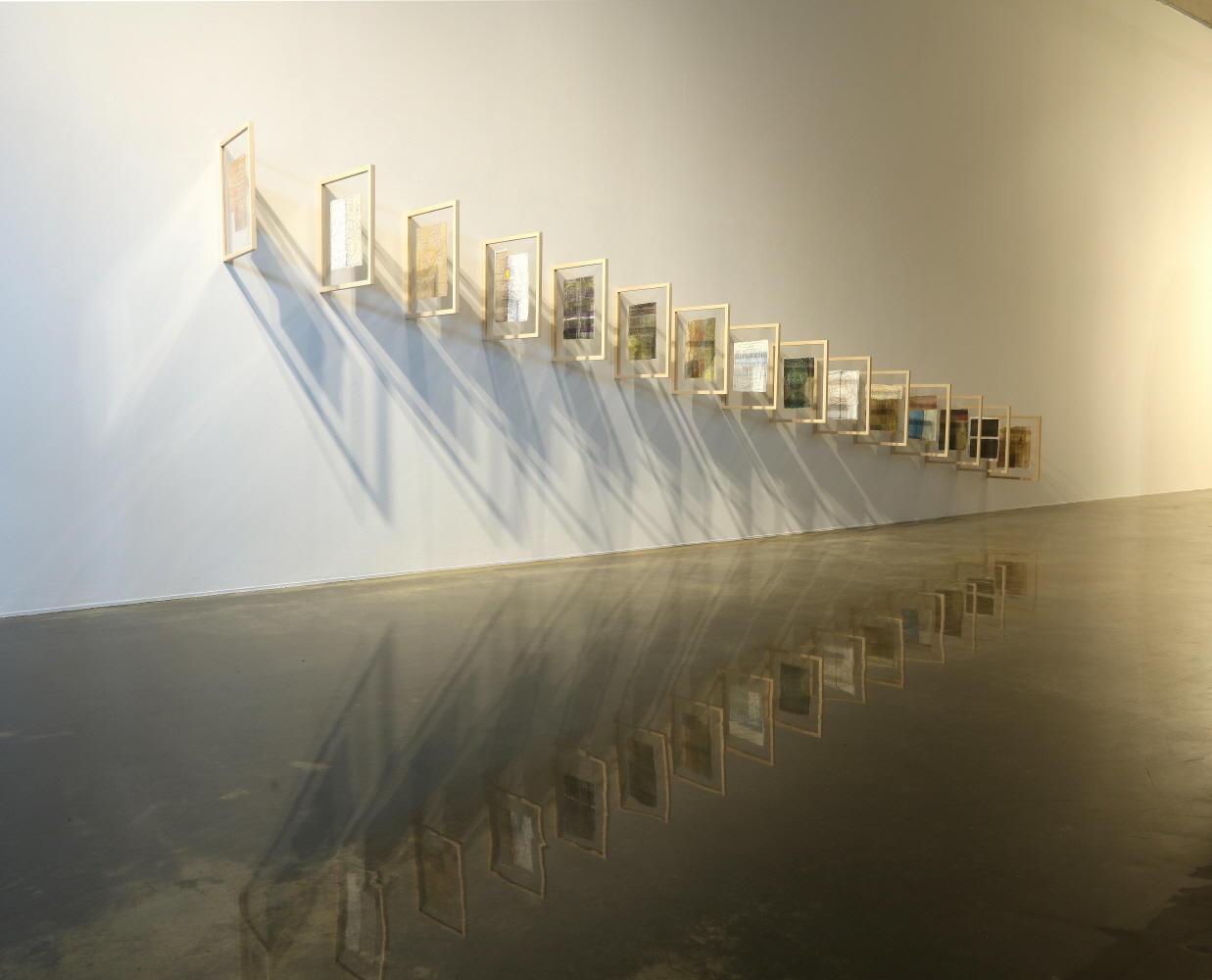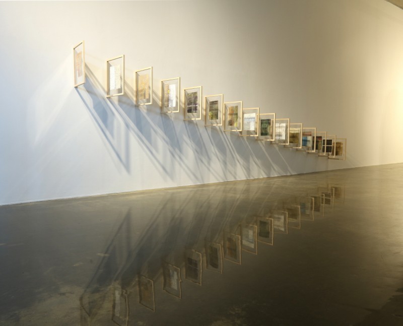 ‘조각보’에서 모티브를 얻어 시작하게 된 나의 작업은 ‘재봉틀’이라는 기계를 통한 ‘바느질 회화’로 그 범위를 넓혀 가고 있다. 장지 위에 아득한 배후를 펼쳐 놓은 듯 자유로운 바느질 드로잉을 하는 것은 마치 장지 위에 예민한 선들로 균열을 내는 듯한 느낌으로 색의 중첩과 함께 바느질 드로잉의 반복으로 보여지는 시간성이라고도 할 수 있지 않을까 싶은 생각이다. 이는 재봉질에서 나오는 실선만이 줄 수 있는 하나의 독특한 장점이라는 생각이다.