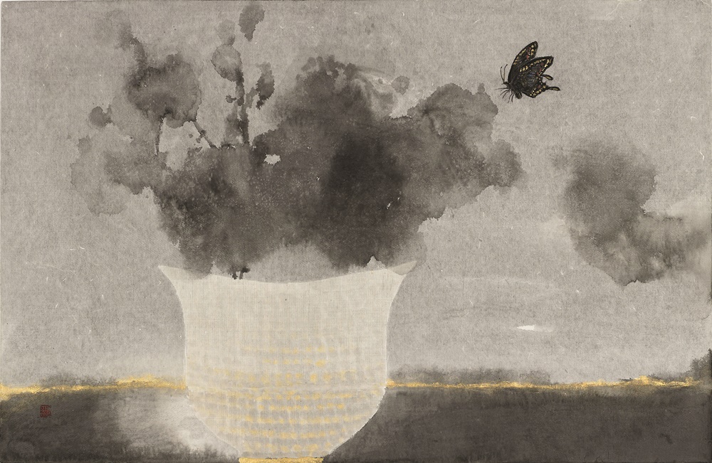 수묵은 그 자체가 지니고 있는 무작위적인 특성과 작가의 작위가 조화를 이룸으로써 이루어지는 독특한 표현 형식이며, 함축과 절제를 전제로 한 형이상학적 조형관을 지니고 있는 것이다. 이러한 수묵은 본인의 작업에서, 오로지 인식의 사유세계에 전념하게 하여, 작가는 물론이요, 감상자들에게도 무한한 상상의 여행을 가능하게 하고, 컬러 사진보다 흑백 사진이나 영화가 감상자에게 무한한 이야기를 하듯이, 그림 역시 흑백에서 오히려 사유를 더 집중시키고 극대화 할 수 있다고 생각된다. 이는 본인이 수묵과 화선지에 집중하는 이유이다. 그러므로 서양 종이나 캔버스와 달리 번져 스며드는 효과를 갖고 있는 화선지에서의 선염 기법은, 지각적으로나 화학적으로 깊은 포용력과 이중성을 갖고 있어, 보는 사람들로 하여금 정신적으로는 마음의 고통, 감각적으로는 마음의 안정을 주게 하는 면이 있다. 특유의 분방하고 파격적인 발묵에 의해 극복되고 있는 화면의 표현에서. 이는 선과 면, 그리고 농담에 의한 대비, 그리고 허와 실이라는 상대적인 것들을 두루 포괄하는 효과적인 조형 방법이라 여겨진다. 농묵의 분방한 발묵을 통해 깊이와 연운을 지니게 된다. 더불어 이러한 발묵의 표현은 여백을 적극적인 조형 요소로 수용하여 화면에 밀도를 더하게 된다. 이에 꽃의 표현에서 보다 농밀한 조형적 구조를 확보할 수 있게 되는 것이다. 2019. 5 작가노트 중에서