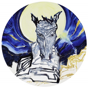 병오년을 맞이하여 말을 많이 그려왔던 작가답게 이번에도 명상하고 사유하는 말의 모습들과 함께 다양한 소재들이 등장한다. 붉은 말의 해 의미답게 긍정적이고 희망가득한 에너지를 담아 그려낸 이 동문의 작품들은 그가 꾸준히 이어오고 있는 “空의 共鳴(The Resonance of the Void)4 -소외의 공간에서 길어 올리는 신화의 공명 ”이라는 주제로 현대인의 비어있는 의식 속에서도 서로 공명하고 파장을 교류하면서 생명의 줄을 영속시켜나가는 모습을 은유적으로 표현하고 있다. 오랜기간의 인생여정을 통해 느낀 생각들을 가감없이 표현한 이번 작품들은 끊임없이 이어지는 시공간에서의 편린들을 이민주만의 독특한 “공명필선Resonant Lines”으로 창작한 작품들이다. 화면속의 원들은 공이며 우주면서도 달이 될수도 있고 비움의 상징일수도 있다. 또한 그만의 그림자나 반영, 투영 등은 항상 반성하고 회개하는 작가의 일상일 수도 있다. 이번에 등장하는 프레스코작품들을 통해 21년간 땅속에 뭍혀있던 석회의 깊은 의미도 작품에 담고 있다. 캔버스 위 요철을 이용한 한지위 수묵작품, 캔버스 위 먹과 과슈, 아크릴을 이용한 작품 등 다양한 기법을 통해 작가의 진솔한 철학을 표현하고 있다. 작가만의 공명필선으로 삼라만상이 연결되어 서로 파장을 나누고 있음을 시각적으로 표현한 작품이다. 서길헌 박사는 “화가 이민주에게 캔버스는 소외의 공간이자 끊임없이 불어나는 우주의 공간이다. 그동안 대개 피마준과 같은 붓질의 선묘로 그려진 그녀의 화면은 모든 사물이 하나의 빛으로부터 우러나오는 듯한 공명의 파장에 둘러싸여 거기에 등장하는 어딘가 초월적인 사물들마저 마치 한없이 투명한 공허를 보는 듯한 느낌을 전해주곤 하였다. 그러한 공간의 느낌은 현대인의 소외감을 일종의 정신적인 떨림으로 채워 신화의 공명으로 이끌어가는 긴장감과도 같다. 주로 동심원과 소용돌이 모양의 선을 통해 그림은 허공 속에서 일어나는 파동과 같은 울림을 준다. 그것은 주로 우물물에 비친 자신의 그림자와 같은 태초의 생명이 솟아나는 기억의 심연을 바라보는 말의 이미지를 통해 화면 가득 확장된다.-중략- 심층의 시선은 그녀의 작업에서 그림을 구성하는 표면의 공명을 다각적으로 일으키는 다층적 소실점과 같다. 이 공명의 근원이 되는 주름과 같은 선들은 동물이나 사람, 또는 암석이나 나무들의 형상을 빚거나 허무는 변이의 리듬을 만들어냄으로써 공간을 다층적으로 확산시킨다. 공간의 확산으로 화면은 존재의 공허함이 우주의 충만함으로 가득한 자리가 된다. 이민주의 작품을 구성하는 이 모든 붓질의 토대는 언제나 우주의 이치를 따름으로써 가능한 일이기도 하다. 이렇게 그녀의 붓이 그리는 선들은 단순한 캔버스 위에 한계 지워진 공간을 초월하여, 새로운 우주를 향해 불어나는 신화의 공명이 된다. -”라고 그의 작품에 대해 평한다.