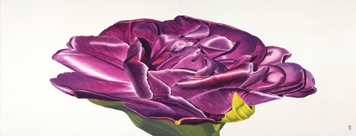 작가가 이처럼 꽃의 생명력이라는 묵직한 콘셉트를 설정하고 이를 조형적으로 표현하고자 한 것은 연약한 꽃 속에 나타난 강인한 생명력에 대한 경외심 때문이라 할 수 있다. 처음에는 아름답기만 한 꽃으로 보였지만, 꽃과 대면하는 과정에서 꽃이 지닌 끈질긴 생명력에 관심을 지니게 되었고, 시공 속의 생명력의 미묘함을 체득하면서 ‘꽃을 통한 나와 여성과 생명’의 의미에 대해 진지하게 사색하게 되었다. 그리고 그 과정에서 인고에 의한 생명의 경이로움에 감동하였으며, 아름답지만 고난을 딛고 일어서야만 하는 인고의 생명력을 작가만의 독특한 사색과 관조(觀照) 속에서 그림으로 표현하였다. 이 생명과의 관계는 작가의 예술 전개에 동기를 부여해주는 중심 콘셉트로 자리 잡게 되었고, 여전히 현재 진행형인 중심 사유개념이다. Ⅱ 작가의 이러한 사색은 곧 완벽한 재현에 입각한 꽃의 형태를 탈피하여 환상적이면서도 탈정전화(脫正典化)적인 이미지를 표출하게 한다. 예쁜 꽃의 이미지를 나타내는 재현의 경계와 추상표현주의자들 같은 비형상의 세계를 넘어선 것이다. 대중과의 유리로 빚어진 추상적 소외감에서 벗어나 새로운 조형성을 구축하고자 시작된 관조적인 사색은 마침내 꽃을 통해 우리 시대의 현대 여성들의 삶, 다시 말해 가부장적인 사고방식 속에서 나타나는 생물학적인 혹은 사회적인 성 차별에서 비롯된 여성의 불평등의 세계를 발견하게 된 것이다. 그래서 작가가 보는 꽃의 내면에는 욕망이나, 배반, 은폐, 가식과 타협, 사회적 억압에 대한 여성의 반발, 인내 등의 다양한 면들이 공존하는 이중적 감성이 자리하고 있다. 그리고 이러한 과정을 통해 나타나는 복합적 양면성은 여러 변화의 과정을 거쳐 알레고리적인 은유, 상징으로 드러난다. 이처럼 아름다우면서도 연약하기만 한 꽃을 통해 억압, 은폐, 가식, 타협, 반발과도 같은 후기모더니즘적 콘셉트를 지닌 패미니즘 성향의 사색을 하는 작가는 한편으로 우리나라 여성들이 전통적으로 가부장적인 제도 속에서 인내하고 희생하는 불평등적인 모순성을 상징적으로 드러낸다. 이런 면들을 부각시키기 위해 그는 화면 안에 어느 한쪽이 잘려나간 절단된 꽃의 형상을 그리기를 주저하지 않는다. 사회 이면에 숨겨진 ‘억압된 은폐’를 담담하게 보여주기 위한 하나의 형식인 것이다. 일부 잘려 나간 꽃을 통하여, 보는 사람들로 하여금 추리와 상상력을 동원케 하며 우리 사회가 지니는 성차별 등의 모순들을 담아내려 한다. 더 나아가 성차별과 사회적 불평등의 모순 구조를 연약한 꽃을 통해 페미니즘적인 관점에서 직시하면서도 서구의 조형처럼 사실적인 조형성을 탐닉하거나 추상적 표현성을 드러내려고 하지는 않는다. 자신의 작품을 통해 서구의 이념과 조형적 사조들을 과감하게 탈피하고자 하는 것이다. ‘억압된 은폐’를 담담하게 보여주기 위해 작가는 장지를 주로 사용하였는데, 역경과 세월의 흔적을 표현하기 위해 색을 덧칠하는 형태를 취하였다. 이 과정에서 발생하는 얼룩과 스크래치는 인내와 고통의 의미로 내면을 삭이는 흔적들이다. 여성의 힘든 세월의 누적을 붓의 덧칠함과 색의 쌓임을 통해 좀 더 공감하고 싶었던 것이다. 이를 위해 호분을 장지 위에 덧칠하고 물이 쉽게 번지지 못하도록 하였다. 마치 인고의 세월을 표현하기 위해서인 듯 여러 색층을 형성하며 물감과 물로 지우고 쌓아 올린 흔적들이 채색으로 자연스럽게 표현되었다. 그리고 단지 색채로만 끝내지 않고 꽃의 생태를 유심히 관찰하는 가운데 이들의 유기적인 움직임은 물론이고 시공간의 영역까지 조형적으로 인지하고자 하였다. 그러기 위해 작가는 먼저 물감이 종이에 스미지 않도록 아교와 호분으로 밑 작업을 철저하게 한 후에야 비로소 자신이 의도하는 세계를 오랜 시간을 두고 조형화해 갔다. 작가의 조형적인 실천에 있어서는, 인고의 세월과 고뇌에 찬 여성과 인간의 이면에 나타난 사회적 현상 관계를 기조로 설정하며, 인고와 극복 그리고 흔적이라는 극히 제한적이면서도 구체적인 메시지가 하나의 조형으로 드러나도록 색과 필을 운용한다. 이 과정에서 여러 층으로 색채의 층을 형성시킴으로써 이면에 담겨진 생존하기 위한 치열함과 함께 여성의 성에 대한 모순된 고뇌가 형과 색으로 상징화될 수 있도록 했다. 단지 여성이라는 이유만으로, 인고의 세월 속에서 이루어진 아픔과 억압과 은폐, 허무와 소멸이라는 상황을 단아하고 선명한 색으로 표현하면서 사회적 삶의 불확실성과 한 단면을 자신의 조형적 단상으로 표현한 것이다. 작가의 이러한 고민과 조형적인 소통은 연약하고 불확실한 시대의 혼란스런 세상을 향해 던진 생명성의 고귀함을 피력한 메시지라 여겨진다.