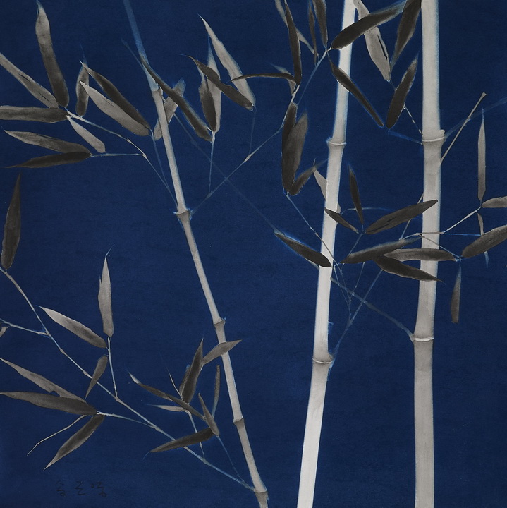 죽림사색(竹林思索), 대나무의 심의(深意)를 보다 안현정(미술평론가, 예술철학박사) 달빛이 내린 창문 위 그림자에 대나무가 살포시 일렁인다. ‘설창풍죽몽삼경(雪窓風竹夢三更)’이 떠오르는 ‘일창풍죽(一窓風竹)’의 모습이다. 대나무의 그림자는 적적한 풍죽(風竹)의 마음을 담았지만, 그 안에 내재한 작가의식은 부조리한 삶의 실존적 극복을 보여준다. 송근영 작가는 대나무를 그린 사색의 숲에서 인생과 자연을 논한다. 《낯선 매화》 이후 보여준 ‘복고의 현대적 해석’을 통해 ‘사의성(寫意性)’을 동시대(contemporary)의 해석방식으로 삼은 것이다. 최근 실험하고 있는 청사진(blue print)의 시아노타입(cyanotype)은 현실 속 대상과 빛을 조작해 청색으로 발색시키는 포토그램(Photogram) 방식을 말한다. 이번 전시는 《빛의 드로잉》의 연장선상에서, 역전된 대나무의 여백 위에 먹의 음영이 가미된 새로운 방식을 선보인다. 초기 작품에서부터 전통의 현대화에 관심을 기울여온 작가는 서화(書畵)가 사라진 시대 속에서 문인의 뜻을 오늘에 맞게 ‘재해석(Re-new)’하는 것이 한국화가의 과제라고 말한다. 그런 의미에서 사군자(四君子)는 교훈적인 뜻, 이른바 사의(寫意)의 가치를 현대적 치유의 방식으로 해석할 수 있다. 바로 ‘낯선 매화’, ‘죽림사색’의 표현방식은 문인미학에 신감각을 더한 결과인 셈이다. 창호지에 스며든 달빛, 그 위에 그림자를 덧입은 대나무, 그 은근함은 안과 밖의 경계를 말하는 듯하지만, 이미지 그 자체는 현대적 기법과 먹의 손맛이 더해져 부드러운 화해를 청한다. 달 밝은 밤 창호지 문에 비친 대나무를 보노라면, 잊혀 진 선인(先人)의 풍류가 느껴진다. 푸른 배경이 청초한 대나무와 어우러져 고아한 문인의 뜻을 아로 새겨낸 것이다. “선인(先人)들은 서화(書畵)를 통해 자연과 대화하는 법을 깨달았다. 나에게 대나무는 바람에 나부끼는 바람과 같다. 푸르게 곁을 지키다가도 달빛과 만나 일렁이는 형상, 창호지에 스며든 대나무의 그림자는 삶을 사색하게 만든다. 사군자 속에는 현대사회의 모순(온갖 병폐)들로부터 스스로를 치유하고자 하는 마음이 담겨 있다. " - 송근영 작가노트 중에서 |