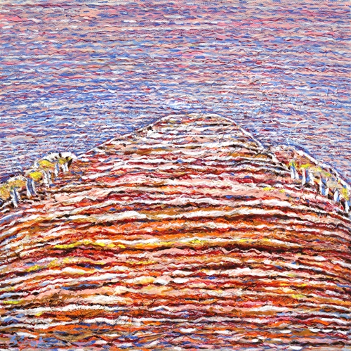 마음이 머무는 곳 / 오란 우란치멕 (미술평론가, 미국 버클리대학 박사) 채성숙의 작품을 보는 사람들은 여러 가지 감상을 갖게 된다. 작가는 전시회를 ‘마음이 머무는 곳’ 이라고 제목을 붙여 영감의 원천을 제시하였지만, 필자가 보기에는 작품 내용이 다양할 뿐 아니라 관객이 여러 갈래로 다양하게 해석할 수 있도록 한 점에서 관대하다고 할 것이다. 따뜻한 색조와 세밀하고 섬세한 운필은 전체적으로 서정적인 포근한 느낌을 준다. 작가가 선호하는, 겹겹으로 쌓은 꾸불꾸불한 실과 같은 얇은 선으로써 수평으로 혹은 수직으로 모양을 만들어 내는 구성 방식은 리듬감 있는 질서와 잔잔하게 움직이는 듯한 율동감을 준다. 또한 그것이 따뜻한 색조의 운율 속에 자리잡음으로 해서 근원에 대한 그리움과 존재의 슬픔을 나타낸다. 작가가 선에 집착하고 선을 겹겹이 쌓는 방식을 씀으로써 작품 속 색채의 스펙트럼을 고양하고 다양화한다. 뿐만 아니라 그 기법은 작품 속에 두터운 질감과 다차원 세계가 나타나게 하고 그리하여 우아하면서도 정지되지 않은 연속적인 율동감의 환영을 보게 한다. 다른 한편으로 그 선들은 베 짜기와 태피스트리(tapestry)가 연상되어 이 작품들이 섬세한 여성의 손길이 만든 작품이라는 것을 확실히 알 수 있게 한다. 이러한 구도상의 변화와 함께 작가는 여러 가지 다양한 재료를 사용하여 성공적인 실험을 하였다. 캔버스와 아크릴을 주로 사용하였지만, 때로는 판지 위에, 또는 분말을 혼합한 재료를 화면에 섞어 놓는다든지, 혹은 양모를 물감과 함께 사용한다. 특히 양모각을 활용한 것이 흥미로운데, 이것이 색채와 합성되어 서로의 장점을 고양시키고 함께 어울리면서 천연스러운 삼차원의 짜임새를 가진 특이한 표면을 창출해 냈다. 색채가 자연의 색깔을 원하는 대로 잘 나타내었을 뿐 아니라, 재료가 바탕 화면과 독특한 방식으로 상호 작용을 하면서도 재료 그 자체의 장점이 표면에 잘 표출되어 있다. 또한 천 조각은 바탕 화면과 잘 조화되면서도 그 재질이 가지는 특장(特長)을 그대로 유지하여 작품 속에 원래 존재하던 활력을 새롭게 더 했다. 또한 작가는 분말을 사용하였는데 그 천연스럽고 반짝이는 듯한 질감이 나타나는 듯 숨었다. 작가가 작품에 이 기법을 주로 사용한 것은 의도적이며 오랜 심려의 결과인 듯 하다. 이 미세 분말의 크리스탈 입자가 색조 속에서 반짝이면서 신비로움을 지닌 추상적 구도를 완성시킨다. 채 성 숙 Chae, Soungsook 이화여자대학교 미술대학 동양화과 및 동 대학원 졸업