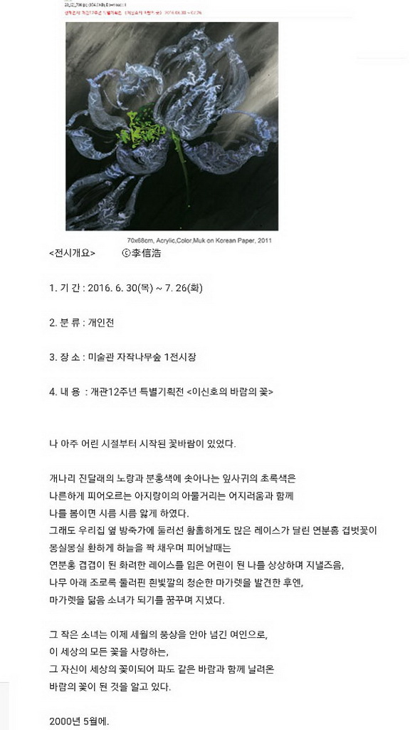 이신호 展 "바람의 꽃" 미술관 자작나무숲 6/30-7/26