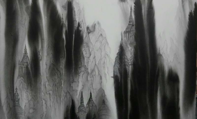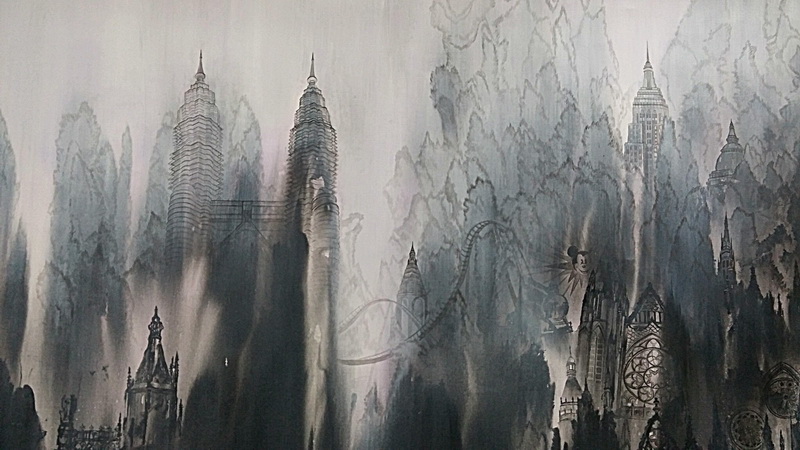 전시제목: 摩天樓(마천루) 갤러리 그림손 GALLERY GRIMSON 서울 종로구 인사동10길 22(경운동 64-17번지) Tel. +82.2.733.1045 관람시간 / 10:30am~06:30pm / 일요일_12:00pm~06:30pm 최소영의 회화 첨탑산수, 자본주의의 무분별한 욕망을 표상하는 고충환(Kho, Chung-Hwan 미술평론) 최소영은 자연과 문명을 대비시킨다. 거칠게 말하자면 여기서 자연은 선을 상징하고 문명은 악을 상징한다. 대비되는 의미를 강조하기 위해서 선이며 악이라고 했지만, 사실 그 의미는 복합적이고 중층적이다. 말하자면 자연은 선을 상징하고, 그 의미는 자연스러운 존재며 순리 그대로의 존재를, 어쩜 인간의 삶이 문명화되면서 상실했을 원형적인 존재를, 자연성과 본성, 야성과 야생, 생명과 같은 하부개념을 아우른다. 그리고 여기에 대비되는 문명은 악을 상징하며, 그 의미는 억압적인 존재를, 특히 자본주의의 무분별한 욕망을 총칭한다. 그렇게 선과 악이 대비되고, 자연과 문명이 충돌하는 작가의 그림은 어둡고 거칠다. 상실된 것(자연)이므로 어둡고, 무분별한 욕망(문명)이 거침이 없어서 거칠다. 현대판 관념산수라고 해야 할까. 보통 관념산수라고 한다면 존재가 유래하고 되돌려질 존재의 원형으로서의 자연, 이상향으로서의 자연에 포커스가 맞춰지기 마련이다. 그러나 시대가 바뀌고 환경이 바뀌면서 이런 관념은 더 이상 어떠한 공명도 불러일으키지 않는 공허한 소리가 되었다. 관념이 지향해야할 자연을 상실하고 원형을 상실했기 때문이다. 그래서 작가의 그림에 비록 이상향으로서의 자연이 언급되지만, 이때의 언급은 그 자체에 의미를 부여하고 부각하기보다는 다만 이런 상실감을 강조하기 위해서이다. 작가의 그림은 이처럼 상실감이 밀어올린 그림인 만큼 비장하고 묵시록적이다. 문명의, 특히 자본주의의 무분별한 욕망을 경고하는, 그런 암울한 비전을 예시해주는 그림이라고 해야 할까. 유토피아의 시대가 가고 디스토피아의 시대가 도래한, 그리고 그렇게 새롭게 도래한 시대감정을 그린 그림이라고 해야 할까. 자연과 문명을 대비시키고, 그 대비가 유토피아와 디스토피아의 대비로 확대 재생산된 그림이라고 해야 할까. 그리고 헤테로토피아를 그린 그림 같다. 말하자면 작가의 의식 속에 등재된 장소, 비장소, 없는 장소, 없으면서 있는 장소, 그 자체가 아마도 작가의 관념(작가가 본 비전)과도 통하는, 그리고 작가의 그림을 현대판 관념산수라고 부르는 이유와도 통하는, 그런 장소를 그린 것 같다. 작가의 그림은 어둡고 거칠고 비장하고 묵시록적이라고 했다. 바로 상실감이 밀어올린 시대감정이며, 억압적인 문명과 무분별한 자본주의의 욕망에 대한 반응이다. 작가의 그림은 대개 그림의 윗부분과 아랫부분이 구분되면서 유기적으로 연결되는 형식을 취하는데, 선염으로 그려진 그림의 윗부분이 자연에, 그리고 주로 건축물과 같은 기물이 묘사되고 있는 아랫부분이 문명에 해당한다. 여기서 자연과 문명은 서로 구별되기보다는 서로에게 스미면서 하나의 층위로 중첩된다. 그렇게 중첩된 그림을 보면, 자연이며 문명 할 것 없이 온통 안개 속에 가려진 듯 희뿌옇고, 화면 아래로 흘러내리는 것 같고, 녹아내리는 것 같다. 토네이도 내지 거친 광풍에 속수무책으로 내던져진 듯 침수되고 해체되는 것 같다. 일종의 안개 속 풍경(안개 속 정국?)이며 수몰풍경으로 시대감정을 표상한 것이다. 그리고 문명은 반영하는 실체는 없고, 반영되는 대상만 있을 뿐인, 그런 불완전한 반영으로도 표현된다. 이처럼 실체는 없고 반영만 있는 것은 말할 것도 없이 허구적인 문명을, 문명의 허구를 강조하기 위한 것이다. 더 공공연하게 묵시록적인 경우도 있는데, 아예 뿌리째 뽑힌 문명이 그렇다. 작가는 그렇게 자연에 대한 상실감을 그리고 억압적인 문명을 대비시키는데, 그 대비를 강조하기 위해서 매개되는 것이 바로 자본주의의 무분별한 욕망이며 물신이다.