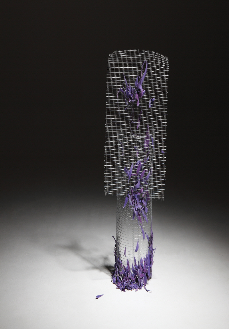 趣, 제4회 개인전의 주제를 醉로 정한 것은 10여 년 간 직장인으로 살면서 작품 활동을 제대로 하지 못하면서 작업에 대한 동경과 그리움에 대한 의미가 있었다. 이번 제5회 개인전 주제를 趣로 정한 것은 작업을 다시 시작하면서 내면으로 좀 더 깊이 들어가고자 하는 의미가 강하여 순수한 감성으로 대상과 만나 그 동안 삶의 깊이가 커진 만큼 좀 더 섬세한 울림으로 표현하고자 했다. 작품의 소재는 자연에서 비롯됐지만 구체적이지 않은 형상으로 시공간의 관념에서 벗어난 상태의 정취를 담고자했다. 작품의 형상을 구체적으로 드러내지 않은 이유는 보는 사람마다 갖고 있는 잠재된 이미지로 작품의 형상을 느끼도록 하고 싶었으며 나 또한 사소한 형상을 통해 우연히 발견되는 형상에 흥미로움을 느끼는 경향 때문이다. 가죽이라는 것은 어떤 동물로써의 생명력을 지녔던 존재였으며 장인의 가공을 통해 또 다른 유명의 물건으로써의 생명력을 지녔던 존재다. 어느덧 시간이 흘러 쓰임이 다 된 제품은 우리의 손을 떠남으로써 다시 생명력을 잃어간다. 나는 이러한 무명의 물건에 다시 생명력을 부여하고자 했다. 이것을 인간의 삶으로 보면 윤회이며 동양화론에서 말하는 化이고 물리에서 말하는 엔트로피로 여긴 것이라 할 수 있다. 내 작업에서 가죽이 붓의 역할을 한다면 망은 화선지의 역할을 한다. 망을 화면으로 삼고 뿌리삼아 자연의 변화를 지켜보며 묵묵히 품어내는 거대한 대지의 모습으로 여겨 삶의 모습을 투영시키고자했다. 씨실과 날실의 구조를 우리 삶의 수직과 수평구조의 형태로 본 것으로 이 구조의 조화로움이 세상을 유지하는 것이라 여긴 것이다. 이런 오브제 작업을 하면서 나를 힘들게 했던 요소는 어느 순간 재미에 빠져 공예적으로 표현되는 부분들이었다. 한국화를 전공하여 오브제를 통해 동양적 정신과 사유를 담고자했던 나의 의도와는 다르게 표현이 제한적인 것에 답답함이 있었다. 그래서 회화성을 찾기 위한 대안으로 그림자를 제시하게 됐다. 그래서 망 위에서 가죽과 가죽 사이에 그림자로 형성하기도 하고 또 망을 통해 보이는 벽면에 그림자가 생기도록하고 망을 겹쳐 표현하기도 했다. 이러한 제한성을 극복하기 위해 다양한 표현방법을 연구하도록 노력해야 할 것이며 다음 작품에서는 致를 느낄 수 있는 작품세계를 표현하고 싶다.