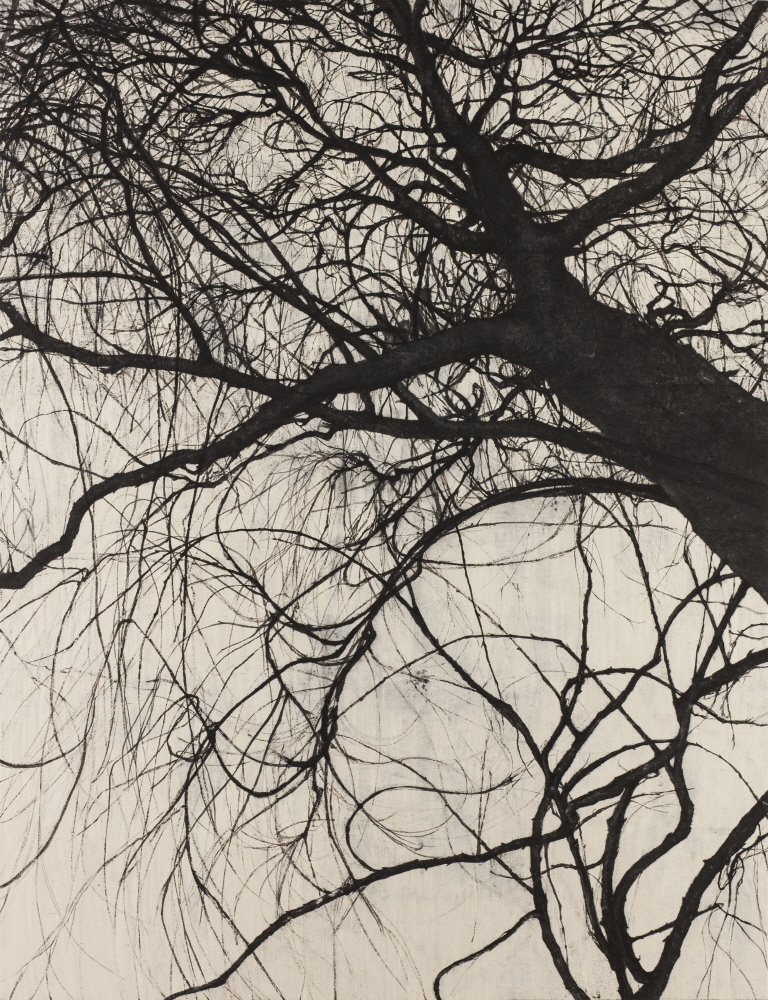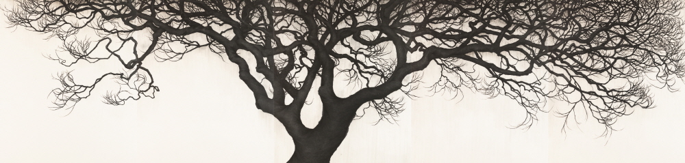 꽃을 피우고 열매를 맺으며 그 생기의 에너지를 뿜어내던 나무는 그 다음 계절의 꽃과 열매를 위해 모든 것을 버리고 나무의 원형으로 돌아가 에너지를 비축한다. 하나의 낙엽조차 떨어뜨려 나무 본연의 모습으로 돌아가는 과정에서 조차 나무는 살아있음을 시각적으로 보여준다. 버리고 버린다는 것은 겨울을 보내기 위함이요, 스스로의 생명을 지키기 위한 수단이자 새로운 계절을 준비하는 방법일 것이다. 앙상하게 뒤엉킨 가지들로 그 뼈대만 남아 고목처럼 보이는 겨울나무는 어떤 계절의 모습보다 혼란스럽고 어지러워 보인다. 계절의 이치에 의해 겨울나무가 주는 정취는 나무의 원통이 보여주는 굳건함과 동시에 교차하여 보여지는 잔가지들의 조형으로 내가 생각하는 경계선상의 혼란스러운 형상의 인상으로 수용되었다. 나에게 혼란스러움이란 두 개의 상반된 성질이 동등한 에너지를 가질 때 생기는 팽팽함으로 대립적 구도의 경계에서 비롯된다. 경계는 낮에서 밤으로 밤에서 낮으로 변화하는 상충되는 에너지 흐름의 중심이자 인간의 나약함과 모성의 온전함 사이의 충돌이 공존하는 공간이다. 또한, 의식과 무의식의 교차점이며, 의미와 무의미의 분별점이다. 해와 달이 교차하는 시간대에 바라다 본 나무들은 서서히 본연의 모습을 보여주기라도 하듯,역광에 의해 그 형상을 뚜렷이 한다. 황혼녘의 한없이 뻗은 가지들과 나무의 얽히고 설킨 형상은 나에게 형언할 수 없는 특별한 경험으로 작품 속의 나의 나무들은 사실에 근거한 재현된 풍경(landscape)이 아닌 나의 마음을 마주한 사건인 심상표현(心想表現)으로의 장면(scene)으로 표현되었다. 즉 겨울나무의 형상은 일상에서의 경험을 통한 조형에 의한 인상의 수용으로 그 조형성을 해석하고자 하였으며 생태학적으로 겨울나무가 가지는 내면의 힘을 생장점을 통해 변화무쌍하는 가지표현에 주력하여 표현하고자 하였다.