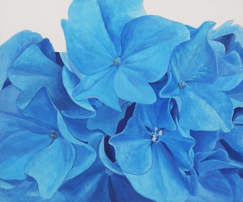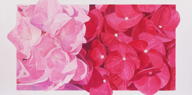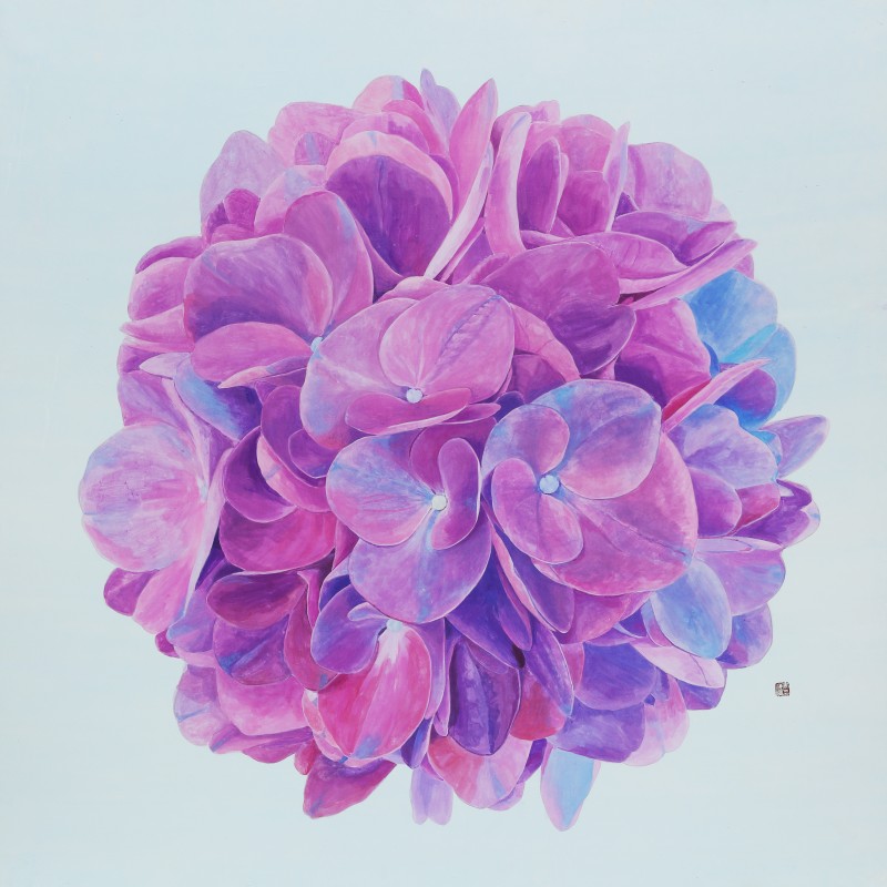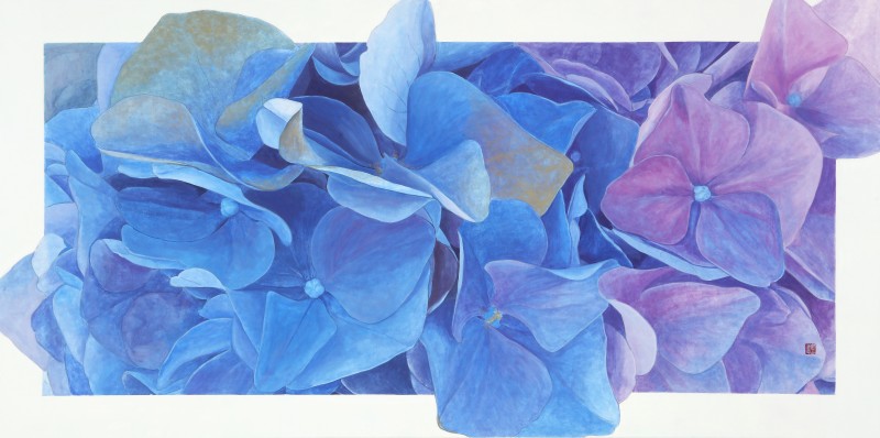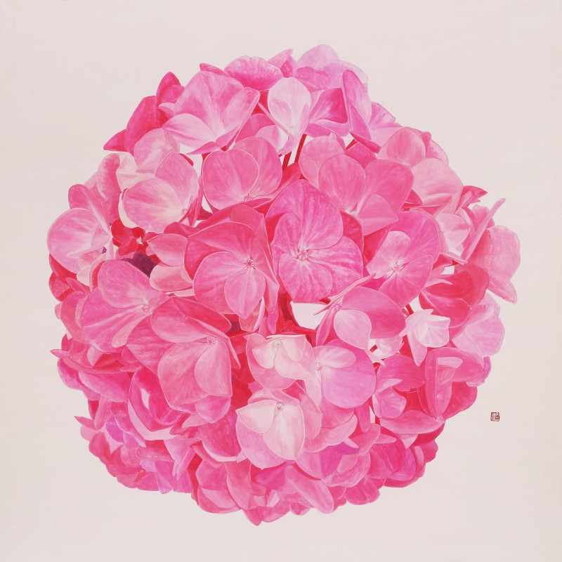 나는 목단백일홍 등 그간 다양한 꽃들을 그려왔지만 2013년부터 내가 꽃을 통해 전달하고픈 메시지나 주제는 항상 같아 왔다그러나 이번 전시는 꽃 중에서 최근 관심을 두게 된 여름에 피는 수국이다색채도 파랑보라핑크 등 종류가 다양하며이러한 다양한 색채들을 장지위에 분채로 강력하고 생동감 있게 표현하고자 하였다