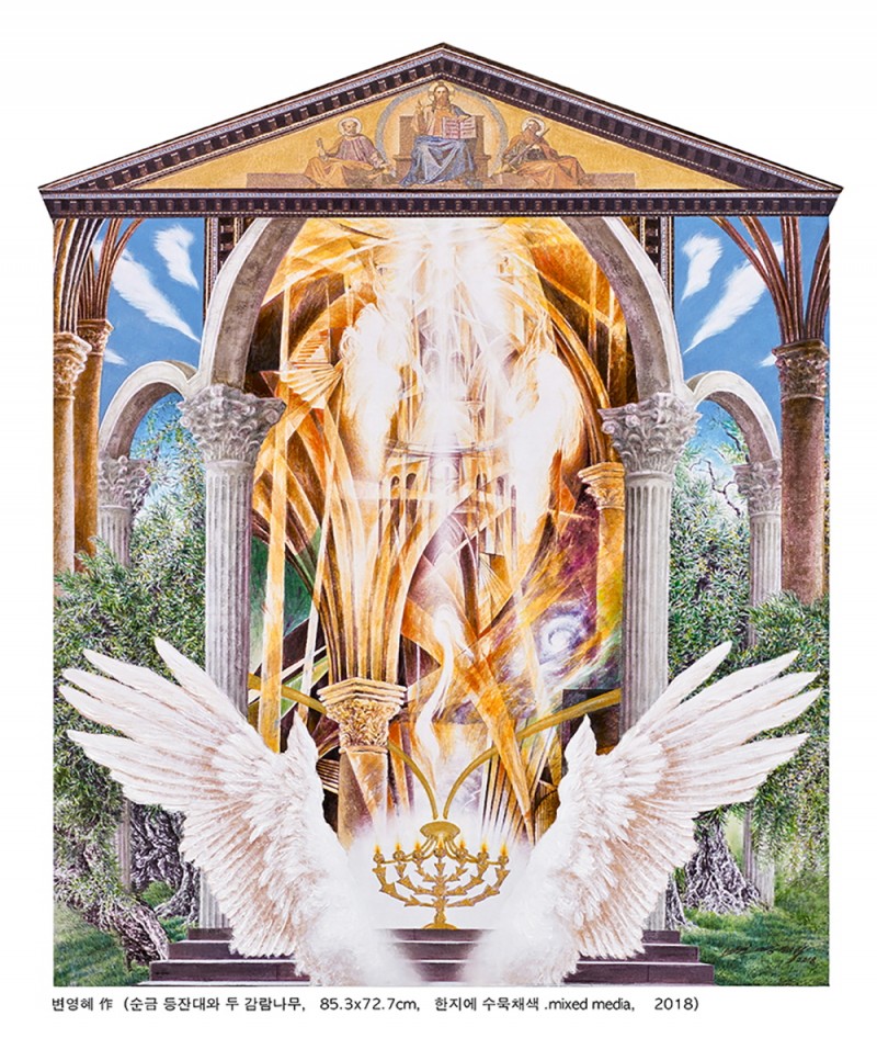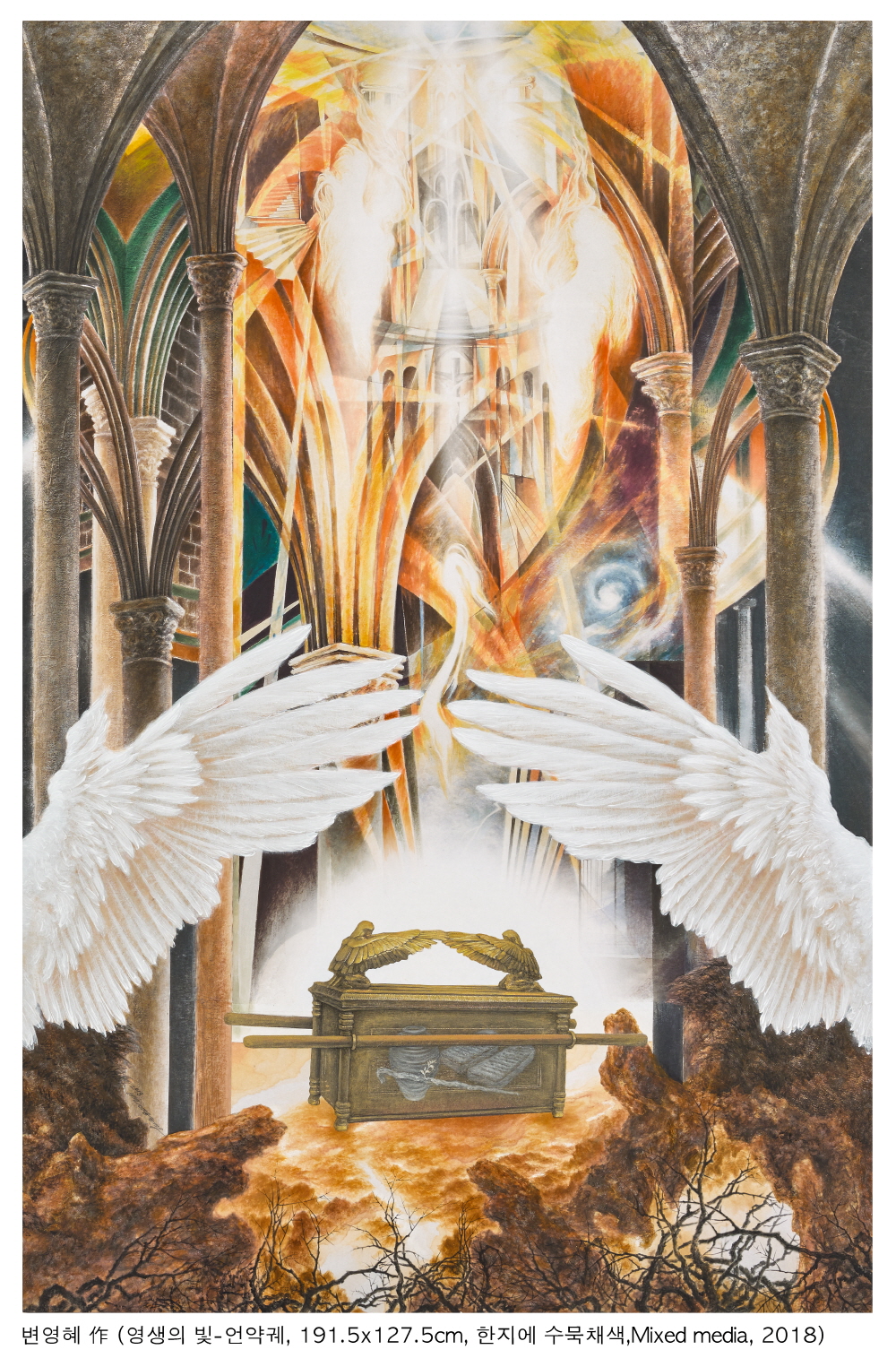언약-오순절(Shavuot) 92x114.5cm / 한지에 수묵채색과 혼합재료 / 2021 변영혜 作