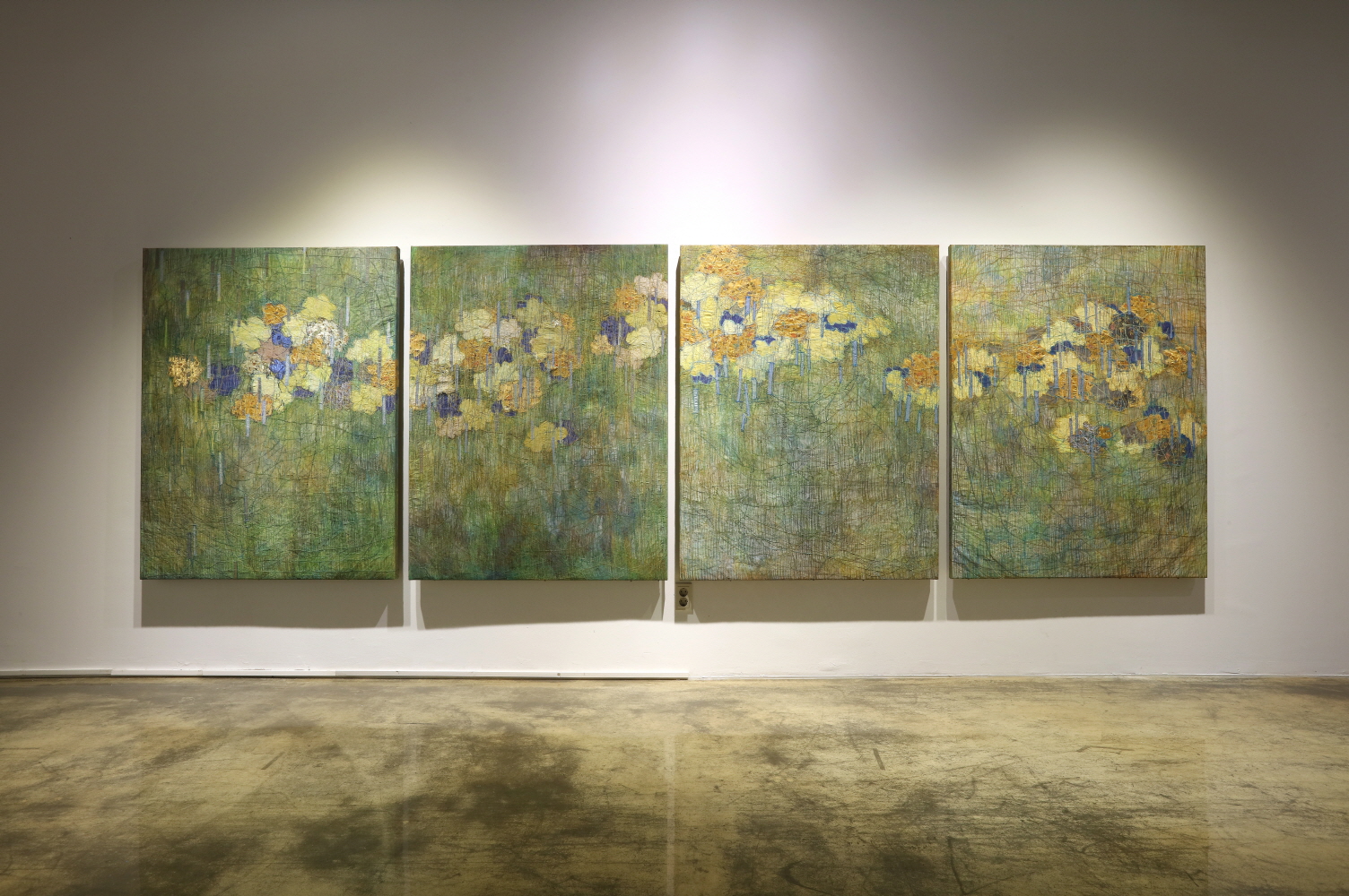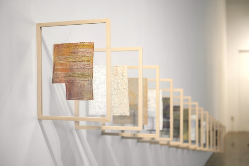 ‘조각보’에서 모티브를 얻어 시작하게 된 나의 작업은 ‘재봉틀’이라는 기계를 통한 ‘바느질 회화’로 그 범위를 넓혀 가고 있다. 장지 위에 아득한 배후를 펼쳐 놓은 듯 자유로운 바느질 드로잉을 하는 것은 마치 장지 위에 예민한 선들로 균열을 내는 듯한 느낌으로 색의 중첩과 함께 바느질 드로잉의 반복으로 보여지는 시간성이라고도 할 수 있지 않을까 싶은 생각이다. 이는 재봉질에서 나오는 실선만이 줄 수 있는 하나의 독특한 장점이라는 생각이다.