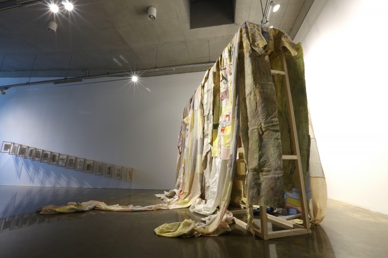 작업에 있어 바느질은 다른 회화 작업에 있어 붓과 물감이라고 할 수 있다. 한지와 천 위를 자유롭게 돌아다니는 실(絲)선은 붓으로 그어지는 선(線)을 대신하는 것이라 할 수 있으며, 이러한 바느질(재봉질)을 통해 자유로운 드로잉 선으로 화면을 구성하고 있는 것이다. 작업에서 보여지는 네모난 조각들은 삶에 있어서의 작은 단편들, 기억들을 의미하는 것으로 이러한 것들이 바느질을 통해 형성되는 실선(線)으로 엮어져 커다란 인생을 만들어 나아간다고 할 수 있다. 바느질 실선들은 세부적으로 시간성, 공간성 등을 의미하고 있다고 할 수 있는 것이다. 갖가지 색채와 무늬, 크기의 천을 여러 가지 형태로 재단하여 새로운 형상을 만들어 나아가고, 재봉질을 통한 바느질로 꿰매기를 하면서 얻어지는 선을 이용한 ‘바느질 드로잉(sewing machine drawing)’을 통해 화면을 구성하는 방식을 이용하여 나의 생각과 삶을 표출해 나아가고 한층 더 폭넓은 관람자들과의 소통을 시도하고자 하는 것이라 하겠다.
