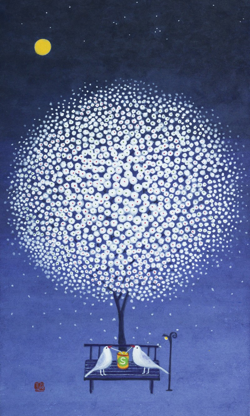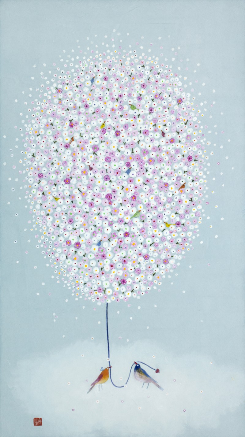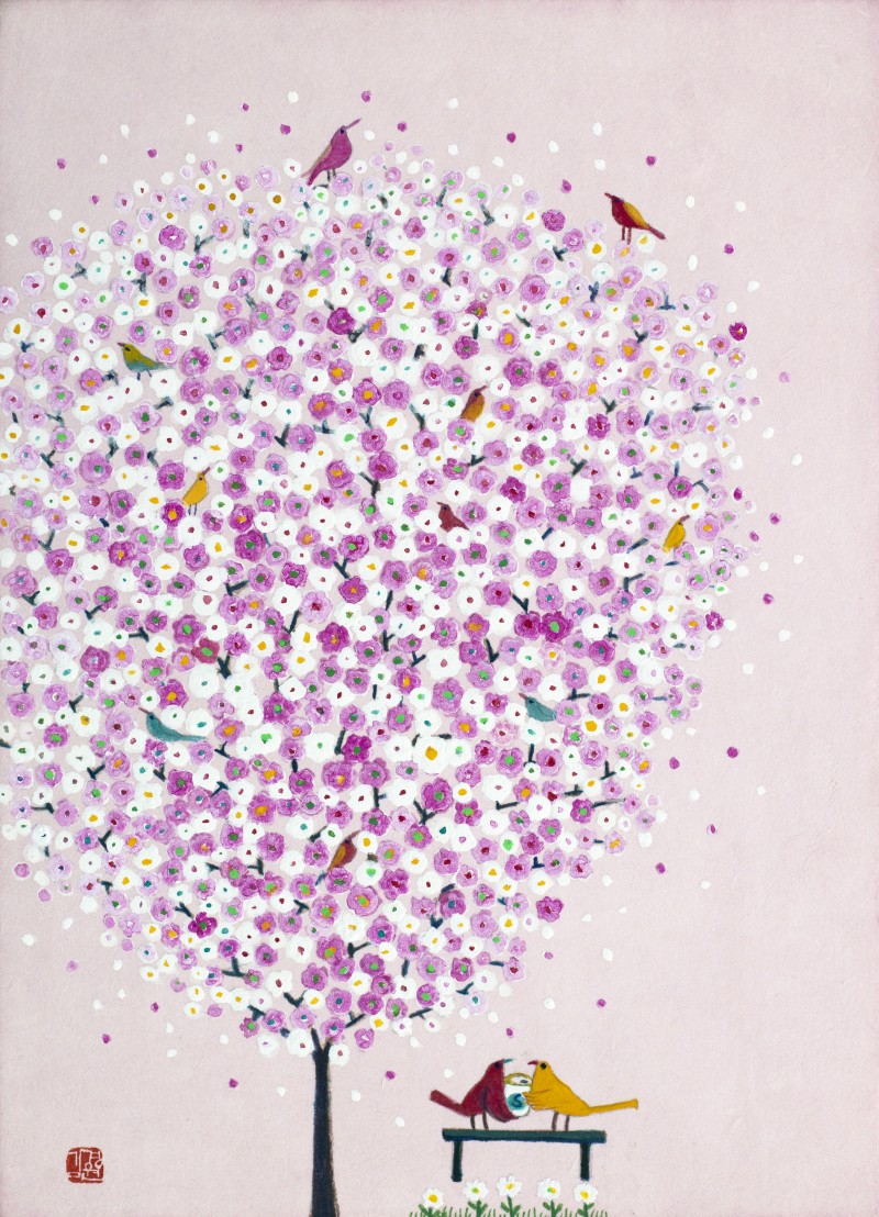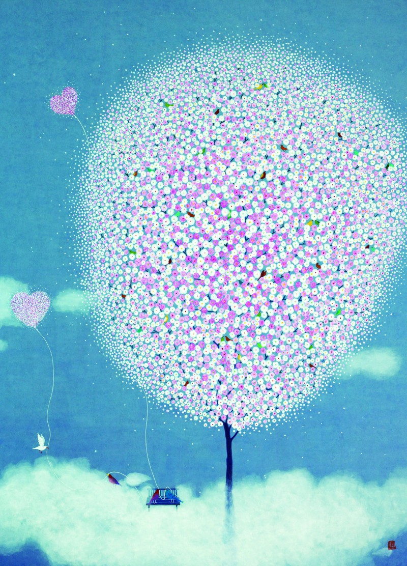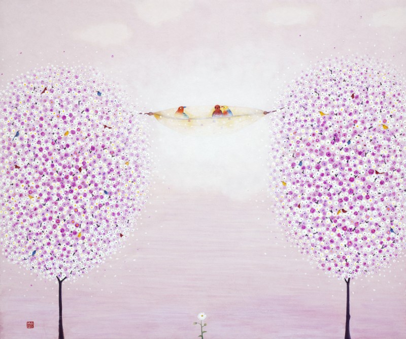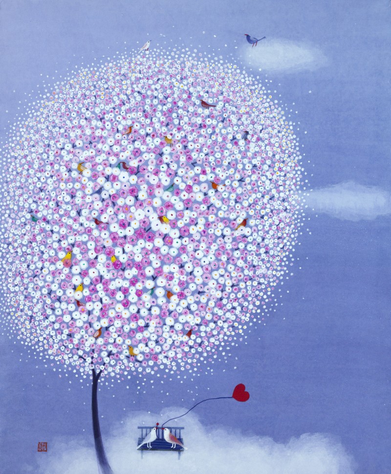 어느덧 50여년 삶의 길 끝에서 문득 꺼내 본 그때 그 설레임. 잃어버린 추억처럼 마음 갈피마다 차곡차곡 쌓여있는 행복했던 순간, 아련한 그리움으로 원망어린 슬픔, 아물지않은 아픔들을 떠나 보내고 싶습니다. 화사한 꽃잎 가득한 꽃나무들과 무지개빛 작은 새들의 향연을 보며 지치고 힘든 영혼들이 작품속 의자에 잠시나마 쉬어갈 수 있었으면 합니다. 언제까지나 잊혀지지 않을 내안의 소중한 인연들과 함께... (작가노트중에서)