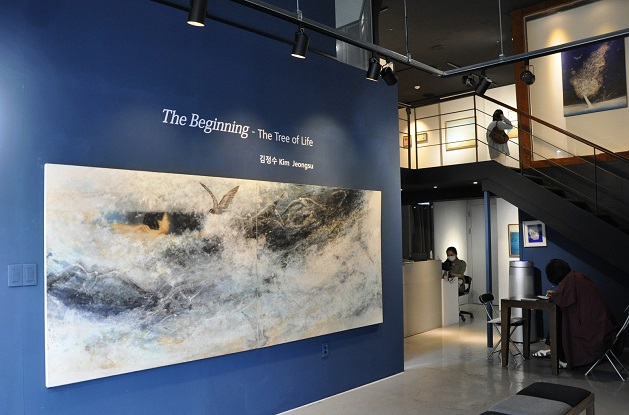 2020년 온 지구는 아프다. 홀연히 찾아온 바이러스로 인해 세계는 정신적, 육체적 공황상태에 있다. 지금 세상은 코로나 광풍이 휘몰아 치고 있다. 나는 “The Beginning”이라는 주제를 통해 코로나 광풍이 부는 세상 가운데 의연하게 극복하는 인류를 상징적으로 표현 하고자 하였다. 위기의 돌파는 또 하나의 새로운 “시작”을 초래한다. 그리고 “시작”을 통해 우리의 “보는 바”는 혼돈과 죽음에서 “생명과 소망”으로 치환된다. 즉, 대상을 “바라보는 관점”이 전환된다. 나의 “생명나무” 시리즈는, 대부분 작가가 “바라보는 것들”에 대한 실상이다. ‘한 송이 들꽃에서 천국을 본다’는 윌리암 브레이크의 시구에서 영감을 받은 나는 가녀린 꽃 한 잎에서 자연을 보며 손안에서 무한을, 순간에서 영원과 천국을 본다. “생명나무” 를 모토로 하는 나의 작품은 하나의 가녀린 꽃잎이 큰 산과 나무가 된다. 작은 꽃 송이 안에 드넓은 하늘과 초원이 존재하고 자그마한 사람의 형상들은 자연의 일부로 그들과 하나가 된다. 나는 마치 호흡을 불어 넣듯이 닥종이를 이용해 작품에 생기(生氣)를 불어 넣는다. 자연의 일부인 닥종이 안료는 작업을 통해 자연 그대로가 된다. 자연 안에는 “생명(生命)”이 생동한다. 그리고 그 “생기(生氣)”는 “치유”를 동반한다.
