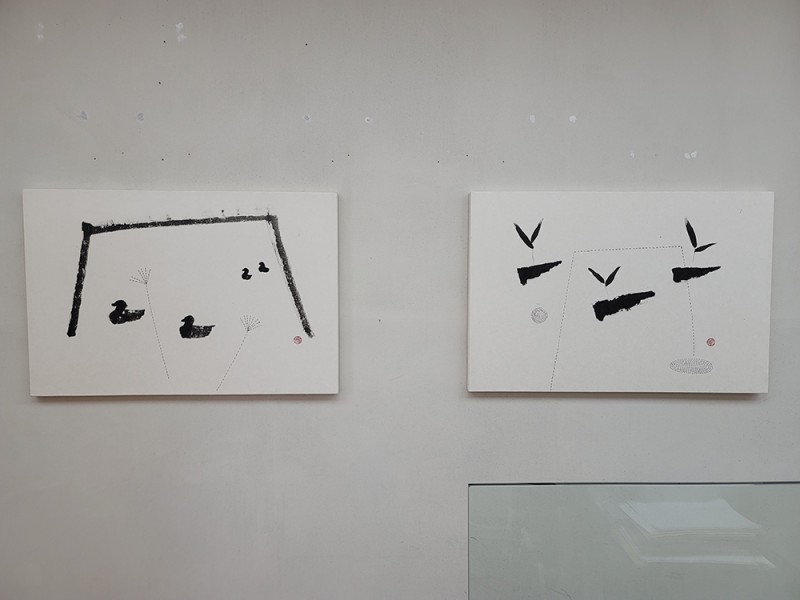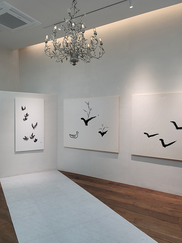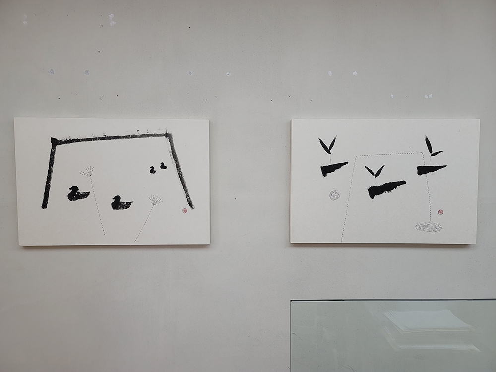 제가 그간 온힘을 다하여 글씨 쓰듯 그렸던 대상은 불멸하는 산수와 화목한 새들. 야무진 오리와 자유로운 갈매기. 평안한 기러기. 기쁜 참새 . 가녀린 풀과 춤추는 나무. 고지식한 바위들입니다. 일필로 그은 획으로 이루어진 그림을 보고 있노라니 멋모를 때 꾸었던 꿈 ,벼루를 먹으로 갈아 구멍을 내어서 그 구멍난 벼루로 산을 이루어 보겠다는 꿈이 아직 사라지지 않고 저의 마음 속에 불씨를 간직하고 있다는 것을 느낍니다.