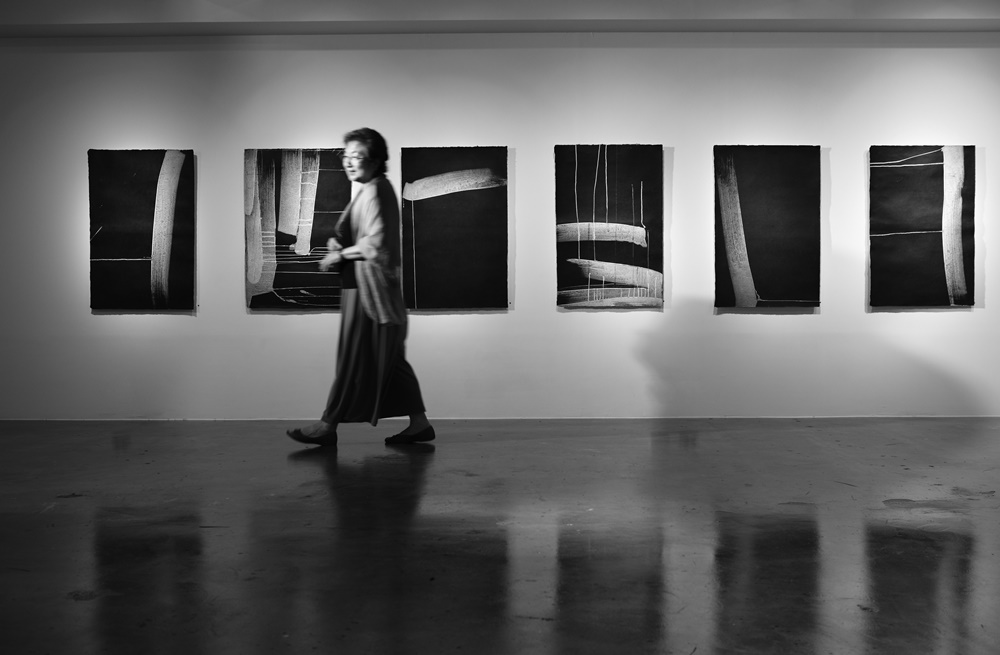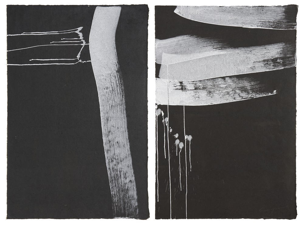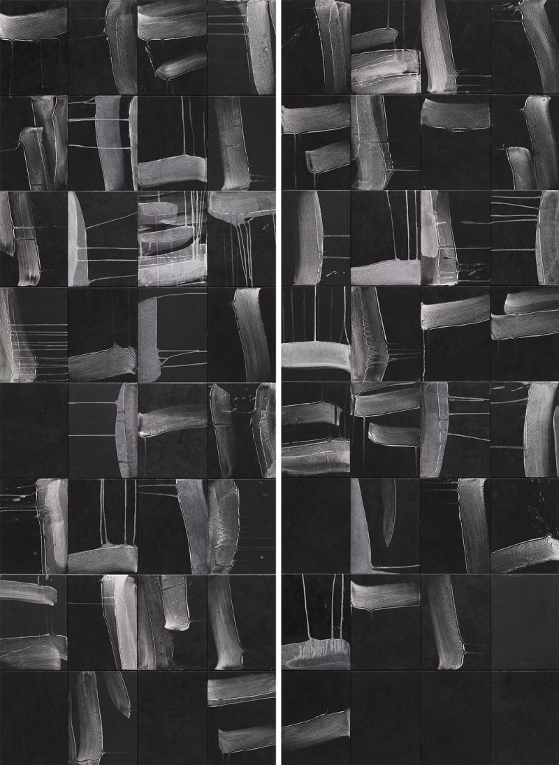 우리 앞에 절제된 분위기의 그림이 있다. 그 그림의 바탕은 언뜻 깊은 밤의 적막함 혹은 빈 공간의 막막함을 상기시키는 검은색이다. 그 검은색 위로는 단호하면서도 우아한 한 두 번의 붓질이 가해지며 만든 흰색의 궤적이 보인다. 그 흰색 붓질은 마치 시간을 응결시킨 듯, 모필(毛筆)이 지면에 닿은 순간부터 지면 밖으로 빠져나간 순간까지를 고스란히 품고 화면 위로 드러났다. 때문에 그 붓질의 흰 빛은 그림 전체에 특별한 대비효과를 발생시킨다. 검은색 바탕이 무()와 부재(不在)의 평면이 아니라 칠흑(漆黑)에서 창백(蒼白)과 음예(陰翳; shadows)에 이르기까지 세상에 존재하는 다양한 검은 빛들이 응집한 공간처럼 느껴질 만큼, 흑과 백 사이에 잔잔한 색조 차이를 만들어내는 것이다. 요컨대 이렇게 하나의 그림이 일종의 직물처럼 색과 면을, 행위의 시간과 형상의 공간을, 검은 빛과 흰 빛 사이의 색 그늘들을 직조하며 특유의 짜임을 생성시킨다.