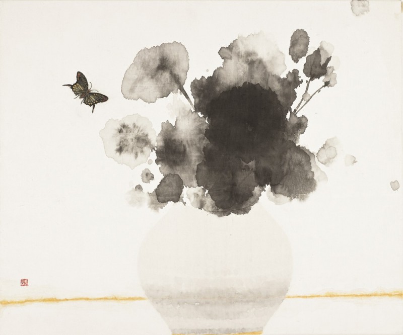 수묵은 그 자체가 지니고 있는 무작위적인 특성과 작가의 작위가 조화를 이룸으로써 이루어지는 독특한 표현 형식이며, 함축과 절제를 전제로 한 형이상학적 조형관을 지니고 있는 것이다. 이러한 수묵은 본인의 작업에서, 오로지 인식의 사유세계에 전념하게 하여, 작가는 물론이요, 감상자들에게도 무한한 상상의 여행을 가능하게 하고, 컬러 사진보다 흑백 사진이나 영화가 감상자에게 무한한 이야기를 하듯이, 그림 역시 흑백에서 오히려 사유를 더 집중시키고 극대화 할 수 있다고 생각된다. 이는 본인이 수묵과 화선지에 집중하는 이유이다. 그러므로 서양 종이나 캔버스와 달리 번져 스며드는 효과를 갖고 있는 화선지에서의 선염 기법은, 지각적으로나 화학적으로 깊은 포용력과 이중성을 갖고 있어, 보는 사람들로 하여금 정신적으로는 마음의 고통, 감각적으로는 마음의 안정을 주게 하는 면이 있다. 특유의 분방하고 파격적인 발묵에 의해 극복되고 있는 화면의 표현에서. 이는 선과 면, 그리고 농담에 의한 대비, 그리고 허와 실이라는 상대적인 것들을 두루 포괄하는 효과적인 조형 방법이라 여겨진다. 농묵의 분방한 발묵을 통해 깊이와 연운을 지니게 된다. 더불어 이러한 발묵의 표현은 여백을 적극적인 조형 요소로 수용하여 화면에 밀도를 더하게 된다. 이에 꽃의 표현에서 보다 농밀한 조형적 구조를 확보할 수 있게 되는 것이다. 2019. 5 작가노트 중에서