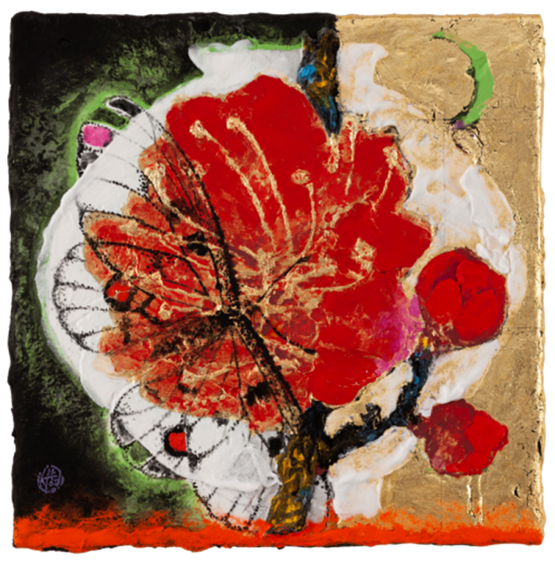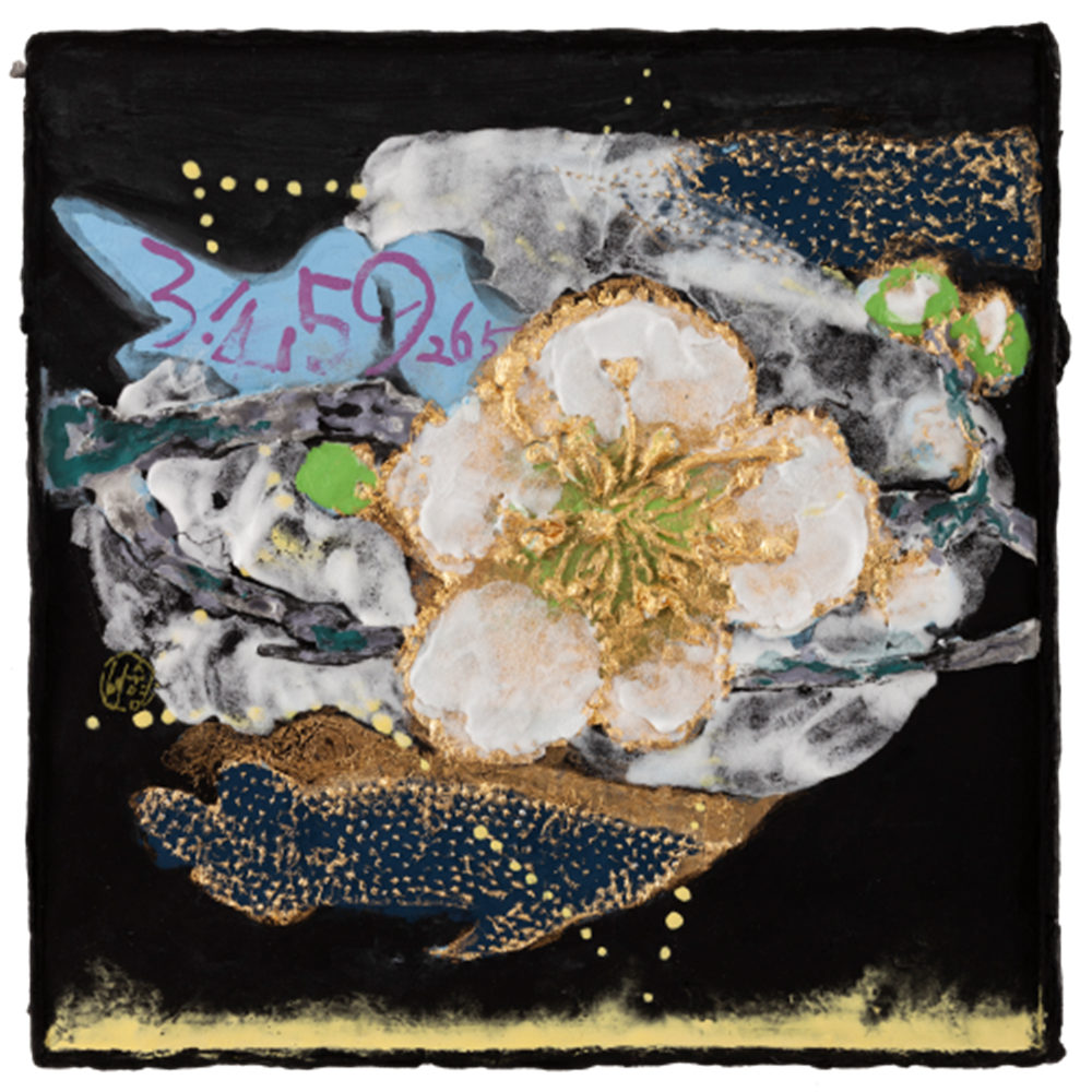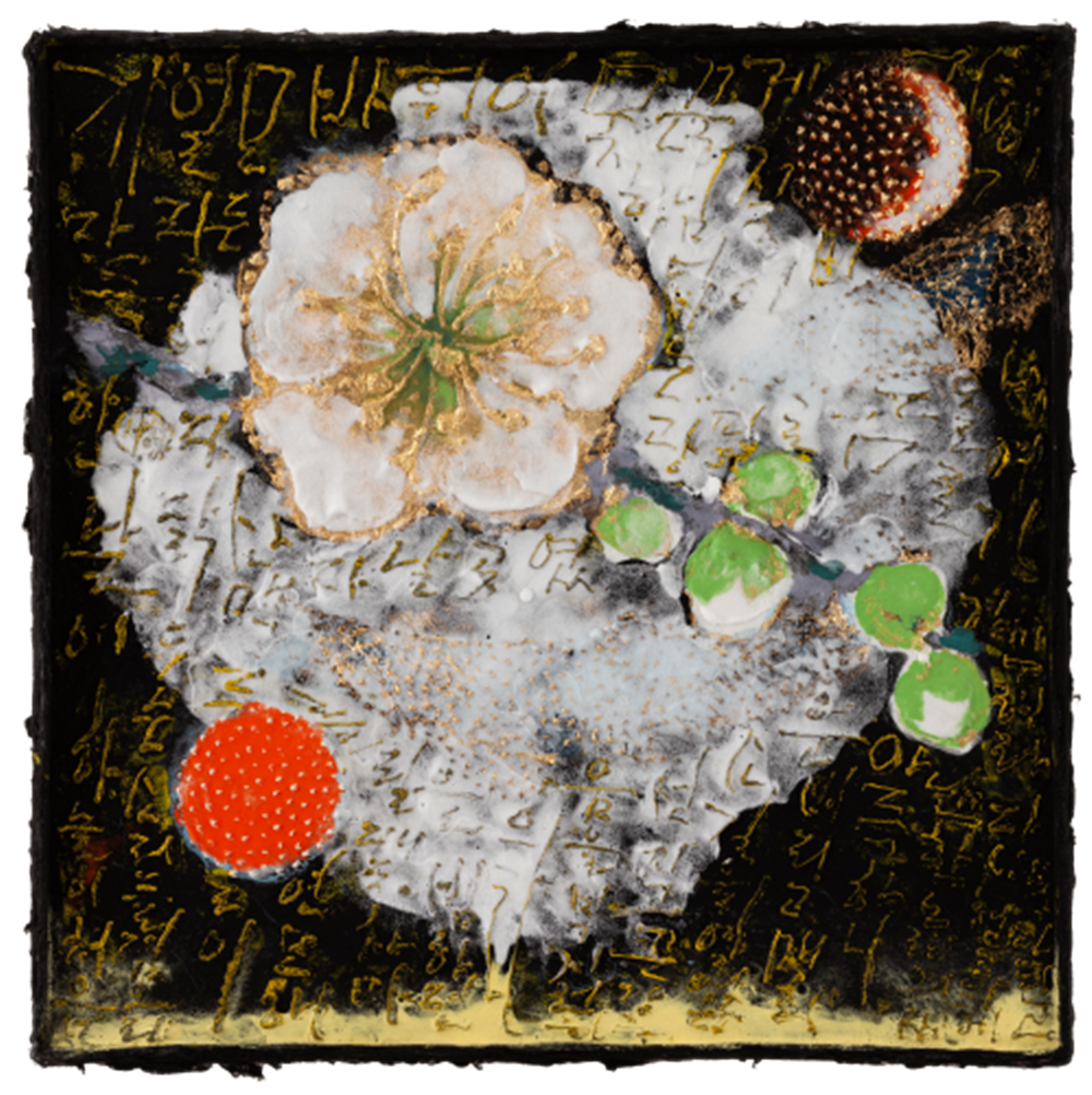 서수영은 탄탄한 묘사 기량을 갖추고 여성 인물화나 일상생활 그림으로 시작했다. 왕이나 왕비 같은 황실 주제로 이어졌고, 한국의 전통문화나 연희, 회화에서 회화적 소재를 찾았다. 서수영은 이에 대해 “나는 누구인가? 우주의 먼지같이 조그만 존재일지도 모른다. 나의 조상들도 그러한 생각을 했을 것이다. 그들의 모습을 그리면서 선조들에 대한 향수와 그리움을 화면 속에 담아보고자 했다.”라고 말한다. 3. 금년 개인전은 <달항아리, 매화를 품다>라는 제목의 작품 20여 점으로 꾸며진다. 이들 서수영 금채화는 2018년 갤러리 에프엠에서 가진 <모란, 동백을 품다>의 연장인 것 같다. 크게 확대한 붉은 꽃그림에 나비나 봉황 등을 겹쳐 배열하는 구성과 함께 붉은색 물감을 유난히 쌓아 올리는 방식이 그런 편이다. 지난해 작품들은 바탕에 막 쓴 한글 서체로 이해인의 유명 시를 삽입해 인기를 끌었다고 한다. 그런데 이번 작품들은 지난해와는 화면의 형태부터 차이진다. 그림의 닥종이를 손수 떴다. 유난히 두텁게 만들면서, 가장자리를 정리하지 않은 채 튀어나온 부분을 자연스레 화면으로 삼았다. 그러다 보니 붓질이나 화면운영의 분방함과 적절히 어울린다. 그동안 대작 의욕과 달리, 소품 위주로 실험정신을 표출한 점이 또한 좋다. 석채 물감의 겹쌓음과 격자형 금박 부침은 예전보다 단단해진 느낌을 준다. 두툼한 닥종이를 직접 뜨면서 생긴 우둘두둘 요철 표면에 걸맞게 석채 안료를 겹겹 쌓아 올려 중후하다. 두께가 있는 붓질은 입체적인 질료감의 유화 못지않게 생동하며, 얼핏 표현주의풍의 현대화답기도 하다. 종이제작부터 필요한 크기와 형태를 스스로 만들어보고, 바탕 재질감에 걸맞는 방식을 찾는 과정은 작가로서 서수영이 갖춘 최선의 미덕이라 할 수 있겠다. 20여 점의 크고 작은 <달항아리, 매화를 품다>는 흰 항아리 위에 홍매 백매 청매화를 확대해 그려 넣었다. 꽃송이가 항아리 크기만 한 게 낯설어 눈에 유난하다. 옛 선비 문인이 사랑하던 꽃이나 겨울을 이긴 첫 봄꽃 같은 이미지 못지않게, 매화꽃이 장식화로도 좋은 소재임을 웅변하는 듯하다. 백매나 청매화의 흰 꽃잎그림보다 붉은 꽃 홍매 작품이 2018년의 모란 동백 그림과 유사하게 다가온다. 꽃술은 약간 도드라지게 선묘로 표현했고, 흰 꽃잎은 호분을 한 번 더 발라 큼직한 매화의 도드라진 입체감을 살렸다. 또 여백 없이 매화의 친구라는 나비가 겹쳐 등장한다. 모시나비의 붉은 점 추상무늬 날개에 가까이 다가 보면, 잔털 붓질의 몸은 사랑을 나누는 교미 장면까지 디테일하다. 작품에 따라 해 달 별 물고기 등도 점묘로 숨은 그림처럼 간간이 섞여 있다. 이전 작품들과 마찬가지로, 서수영의 화면에는 조화나 리듬보다 양껏 자기 속내를 쏟으려는 젊은 욕심이 가득 차 있다. 매화 시를 한글로 쓴 작품도 선보인다. 지난번 이해인 시를 잔뜩 옮겨 적은 모란 동백 그림의 연장으로, 무심한 한글 서체이다. 여기에 크고 작고 뒤집어 쓰기도 한 3.14159265...의 숫자가 눈에 띈다. 둥근 달항아리와 맞춤인지, 원주율 파이의 끊임없이 이어지는 수열이다.