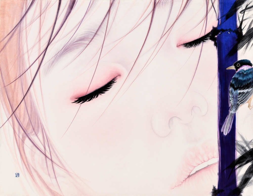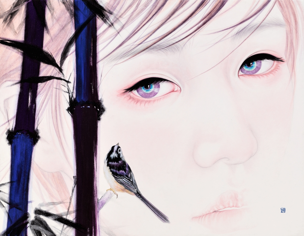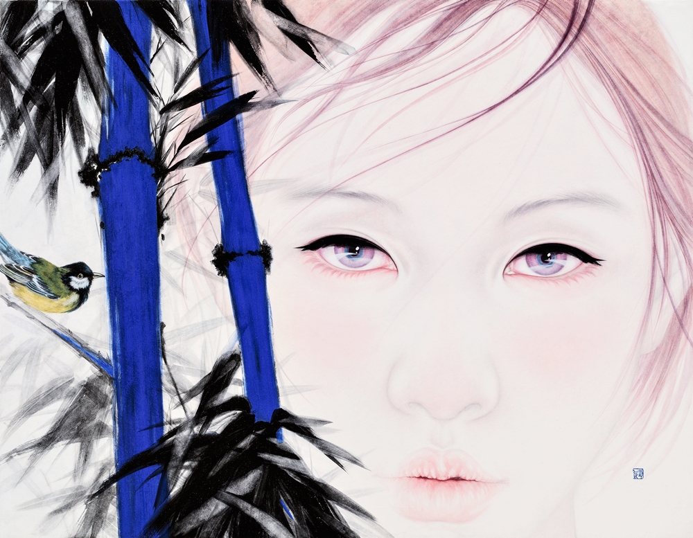 강유림 작가의 화두 또한 여성이다. 작가는 줄 곳 여성만을 그려왔다. 여성의 아름다움을 강조하려는 것보다 여성으로서 살아가야 하는 숙명과 현실에서 맞닥뜨리는 상황을 여성으로서 어떻게 헤쳐나가야 하는지를 여성 인물을 통해 전달하고 있다. 인물의 핵심은 표정이다. 표정에는 많은 감정이 숨어 있을 수 있다. 우리는 현대사회에서 표정을 감추고 살아야 하는 경우가 많이 발생한다. 감정을 숨기고 살아가는 현대인에게 표정은 그저 삶의 대처방안이고 현실사회의 기본이 되었다. 솔직한 어린 아이의 감정은 성인이 되면서 점차 적으로 제한된 감정표현으로 변화해 가는 것이 사실이다. 작가가 표현한 여성 인물들 또한 감정을 쉽게 드러내지 않는다. 하지만 숨겨진 감정은 인물의 눈과 배경을 통해 간접적으로 엿볼 수 있다. 대나무, 텍스트(한자), 화조, 산수의 등장은 작품 속 여성들이 과거의 시간과 조우를 하고 있다는 것이다. 작품 속에 등장한 여성은 현대 여성이다. 현대여성이 과거와 조우를 한다는 것은 과거의 시대적 제도와 사회적 역할을 지나, 현재 이 시대를 살아가는 여성의 상황과 교차하는 부분을 살피려는 의도가 있다. 과거의 제도적 제약은 현재에 이르러서도 크게 변함이 없지만 현대여성이 과거로 되돌아 가는 것이 아니라 과거를 관조하며 현시대를 고찰하고자 한다. 현대 사회는 여성의 인권과 권리를 위해 노력하고 있음에도 불구하고 권리와 의무에 대한 제도적 원리는 아직 불완전하다. 작품 속 여성들은 이러한 상황을 대처하는 의지를 감정적 표현으로 나타내고 있다. 여성들은 과거의 시간에서 벗어나길 원할 수도 있고 그 시간에 머물며 자신을 바라볼 수도 있으며, 과거를 잊고 새로운 자신을 맞이하고 있는 과정일 수도 있다. 그녀들이 바라보고 응시하는 것은 현대 사회에 대응하는 무언의 저항이며, 독립이다. 때로는 아련한 눈빛으로 때로는 어딘가를 응시하는 눈빛으로 우리에게 대화를 요청하고 있으며 그 대화는 그녀들에게 휴식이 되기도 하고, 안식의 장소가 되기도 한다. 현대 사회에서 부딪히는 여성의 삶은 치열한 현장에서 지쳐가는 정신과 무게로 인하여 자신만의 쉼의 장소를 찾고 있는 것이다. 몇 백 년 과거 여성들 또한 그 상황이 다르지 않음을, 그녀들은 자신들의 방식으로 삶의 가치를 찾아 갔으며, 삶의 대안을 마련했다는 것을 작가는 현대여성과 과거 여성이 표방한 조형으로 그 감정을 이야기하고 있다. 지극히 자연주의적 표현을 강조하는 것은 그 의미가 있다. 과거의 여성을 대표하는 신사임당 초서를 배경으로 현대여성이 모습을 드러내는가 하면 그녀의 그림과 오버랩 되는 현대여성의 상황적 설정은 단순한 과거의 접근이 아닌 정신적 개념과 사상을 본질적으로 모색한다는 가치를 부여하고 있다. 과거의 여성이 행하였던 실천과 행위는 자신이 할 수 있는 최대한의 방어와 삶의 의지를 나타낸 것으로 그 시대의 비판적 인식에 대응하는 동시에 극복하고자 하는 방식이었다. 작가는 현대여성의 본질적 변화에 따른 불안정한 혼란을 과거여성의 의지표방을 오마주 하면서 현대여성에게 미적 휴식을 제공하고 있는 것이다. (이하 생략)