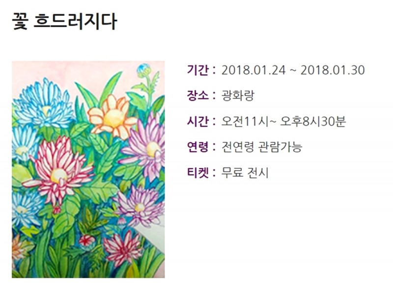 | 전시장소 | 광화랑 | 전시기간 | 2018년 1월24일 ~ 2018년 1월30일 | 전시작가 | 김은미 |