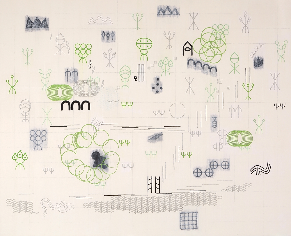 나는 이번 작품에서 태고의 상형문자와 음양기호(괘)의 만남을 시도하였다. <문자 속 문자>라는 전시주제에서 보여주듯, 작품 속에 상형문자의 의미를 찾고 그 속을 거니는 나를 발견한다면, 그 속에서 또 다른 자연을 만날 것이다.