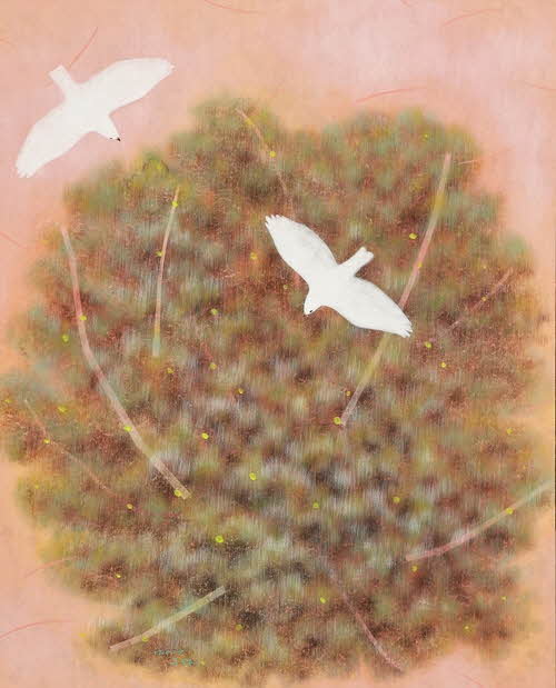자연과의 합일을 추구하는 동양사상을 바탕으로 내면 심리를 표현 매체가 나무와 새라면 새는 사의적인 표현으로 은유적인 소재로써 대상을 바라보는 관찰자로 대변되기도 하고 작품을 바라보는 관객이 새를 통하여 화면을 바라보는 소통의 대상이 될 것이다.