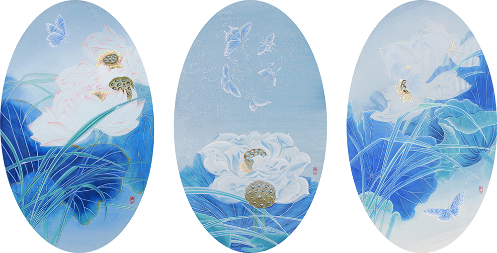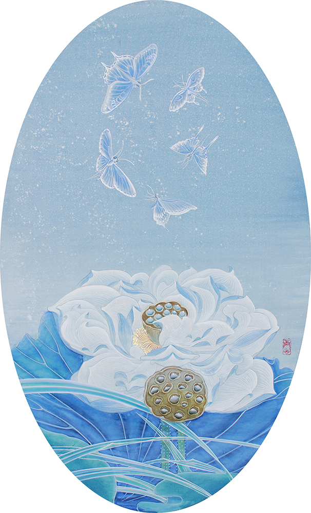 우리는 매년 추석, 대보름이면 둥근 황금빛 큰 원을 향해 소원을 빈다. 재물복과, 성취, 건강 등 각자가 원하는 바를 기도하고 이뤄지기를 기원한다. 우리에게 황금빛 둥근 원은 우리의 소원을 이뤄줄 수 있는 보름달이기도 하고, 성인(聖人)을 나타내기도 하여 동경과 신성함의 차이를 의미하는 오브제이다. 멀리 작게 보이는 달을 화폭에 최대한 확대하고 황금을 입혀 그 의미를 극대화하였다. 황금빛 원의 경계는 소원 성취와 신성함의 경계선이며, 나비는 소원을 빌고 기도하며, 이를 이루고자 하는 많은 사람들을 비유한다. 바라는 아름다움에 대한 욕망과 기원들이 보름달 안에 있다, 이는 허영일 수도 있고, 꿈일 수도 있다. 보름달 안에 있는 나비들은 원하는 바를 성취한 이들일 수도 있고 누구보다 더 갈망하는 자들을 은유적으로 표현했다.