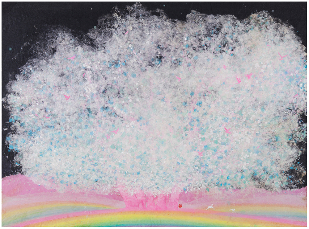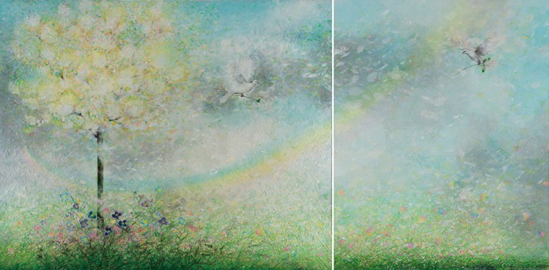 나는 닥종이로 그림에 불어넣는 작업을 한다. 한국의 전통 닥종이를 캔버스 위에 백묵(白墨)처럼 사용하면서, 생명을 통한 치유를 주제로 < The Tree of Life –생명나무>연작을 통해  주로 (), ‘언어 등을 글이 아닌 그림으로, 천국과 같은 이상향 표현하고자 하였다.  나는 마치 호흡 불어넣듯이 닥종이를 이용해 작품에 생기(生氣), ;루아흐(rûah) 불어 넣는다. 많은 layer 통해 자연의 일부인 닥종이는 자연 그대로가 된다. 이때 나의 숨과 그림은 하나가 되고 닥종이의 섬유질은 숨결처럼 화면에 그대로 부어진다. 자연 안에는 생명(生命) 생동한다. 그리고 생기(生氣) 치유 동반한다. 닥종이의 숨결로 표현한 이상향을 통해 나는 보는 이들에게 평안과 치유가 전해지기를 소망한다.