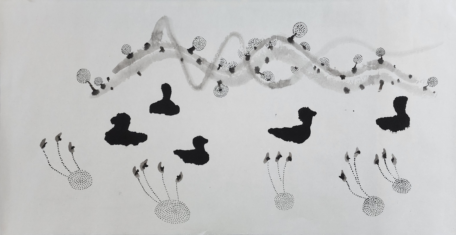 그림을 배울 때 전서. 예서와 사군자를 많이 썼다. 매일 운필 연습을 하였는데 먹물의 흔적이 매번 다르게 묻으니 그 흔적이 마음에 들 때 까지 하염없이 쓰느라 세월을 많이 보냈다. 지금 생각하면 그림을 잘 그려보려고 젊은 시절에 진짜 애를 많이 썼구나 하고 감탄할 때가 있다. 또 먹물 자국에 빠져서 세월을 보낼 만큼 그렇게 유유자적하였나 싶기도 하다. 그러나 요즘은 살다보니 죽을 힘을 다해 이것 저것 오만 가지를 다 하고 있다. 그런 것이다. 인생이란 생각지도 못한 오만가지를 다 겪으며 버티며 살아 내는 것이다. 나도 날씨가 좋을 때에만 산보를 나갔으니 오리의 평안한 모습만 보았겠지 한다. 바람불고 비오는 날에 오리가 어떻게 하고 있는지는 알 수가 없다. 아마도 그때 오리는 숨어서 힘든 시간을 잘 견디다가 또 화창한 날씨에는 나와서 산보 나온 나에게 예쁜 모습을 보여 주었을 것이다.