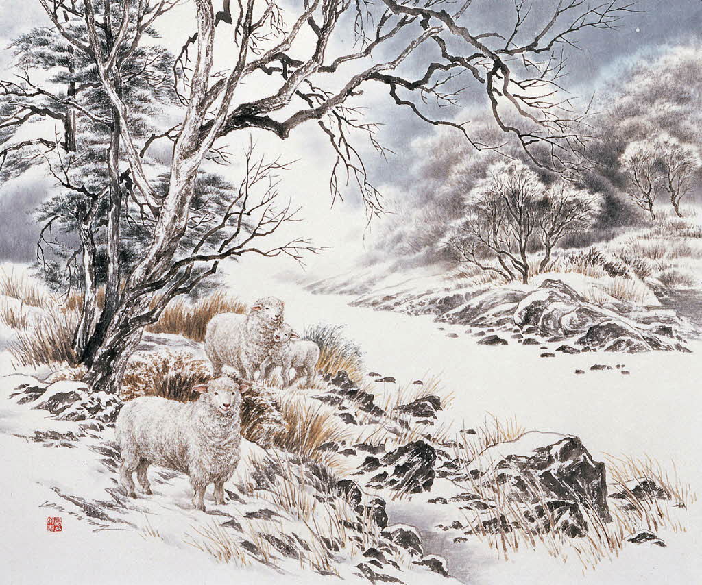 한지, 수묵담채