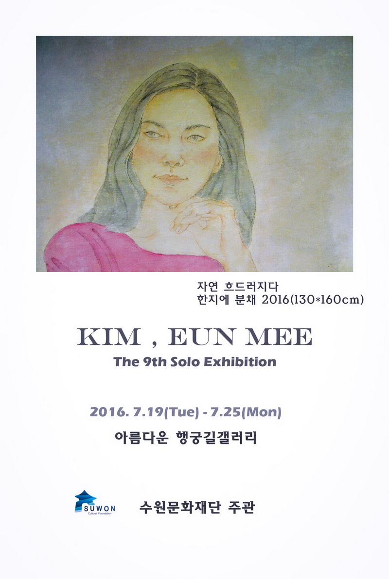 The Art Student League of New York 수학 9회 개인전(현대 백화점갤러리,영국 브리스톨, 캐나다 벤쿠버, 세종문화회관 미술관 본관, 광화랑, 수원행궁길 갤러리) 그룹전 다수 김은미 9회 개인전 아름다운 행궁길갤러리 (수원문화재단 주관) 2016. 7. 19(Tue)~7.25(Mon) 전시장 전화번호031)290-3553 주소 수원시 팔달구 행궁로 18 (남창동) 1층 |