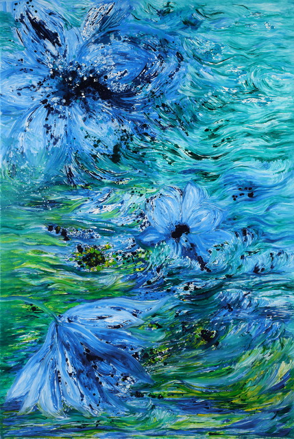 앞으로 펼쳐질 눈부신 푸르름으로 가득한 청색의 향연, 생기와 활력이 넘치는 꽃의 향연이 기대된다. 거대한 꽃들이 파도를 타고 다가오는 환상을 품어도 되지 않을까? 이것이 환상으로만 끝나겠는가. 아니다. 우리 현실에서 무언가 활기찬 생의 에너지와 희망을 선물로 받을 수 있을 것을 확신한다. 작가의 푸른 향연은 아름다움과 희망, 그리고 상상과 꿈으로 가득한 우리의 미래이다. 눈을 맞추어 보고난 다음, 그 다음엔 그림들에 귀를 기울이자. 어떤 생명의 박동들과 선율들이 들려지는지 말이다.