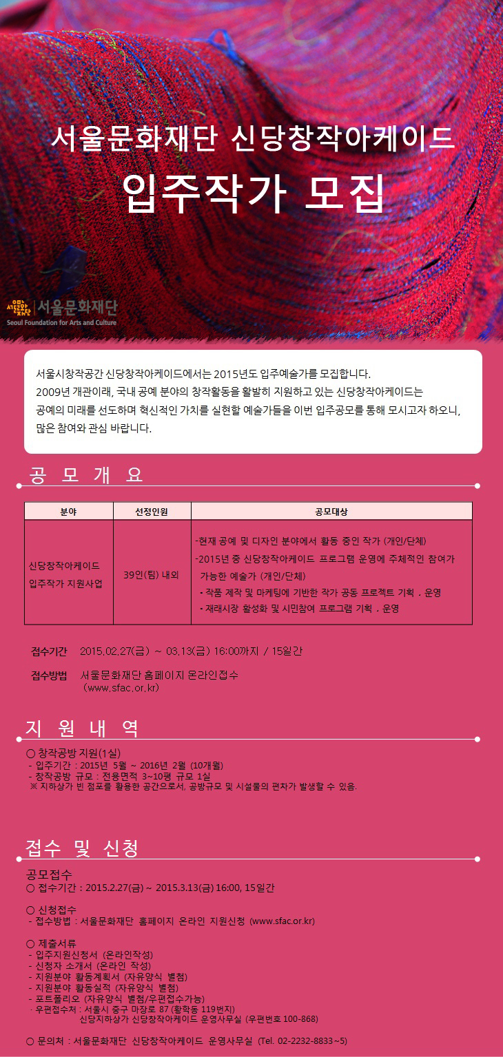 서울시창작공간 신당창작아케이드 2015년도 6기 입주작가 공모
